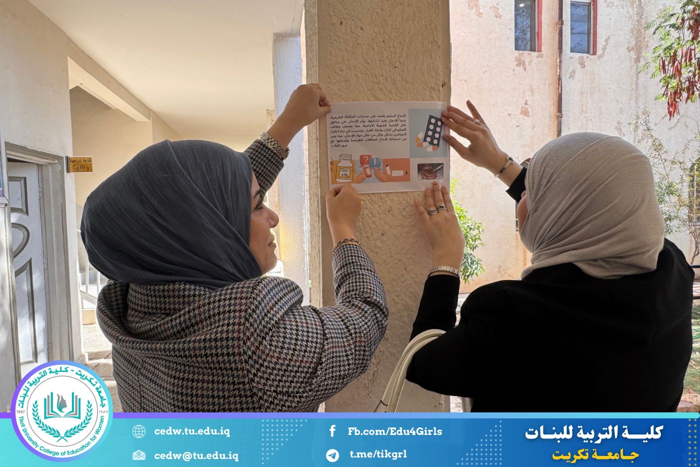 لكلية التربية للبنات مكانة علمية رفيعة فهي إحدى أهم معالم الدراسات الأكاديمية للأقسام الإنسانية والعلمية في جامعة تكريت ، وتقع في وسط مدينة تكريت خارج الحرم الجامعي ، وتضم بنايتين أحداهما تضم الأقسام العلمية والأخرى للأقسام الإنسانية والتي فيها المقر الإداري لعمادة الكلية .تأسست الكلية في العام الذي تأسست فيه جامعة تكريت وهو عام 1987 ، وكانت بمثابة نواة لها وهي بذلك تعدّ أقدم مؤسسة علمية بين أقرانها، وقد أطلق عليها اسم الكلية الأم تيمناً بذلك فغدت معلماً بارزاً لتحقيق أهداف وطموحات وخطط التعليم العالي القائمة على إعداد كادر نسوي يضطلع بمهام التعليم الثانوي في عموم القطر إلى جانب إعداد باحثين متخصصين في المجال العلمي والإنساني وباختصاصات متنوعة لأقسامها الثمانية حتى أضحت رافداً مهماً لإعداد ملاكات علمية وطنية مقتدرة تصب في حركة البحث العلمي وخدمة المجتمع المحلي والعربي تم قبول الطالبات فيها في العام الدراسي 1988- 1989، ولثلاثة أقسام هي الرياضيات واللغة العربية واللغة الانكليزية ، ثم تلتها أقسام الكيمياء وعلوم الحياة ثم علوم القرآن والعلوم التربوية والنفسية و قسم التأريخ وأخيراً قسم الاقتصاد المنزلي الذي يعدّ التفسير الفعلي لمعنى (كلية التربية للبنات) . وتحوي الكلية مرافق متعددة ففيها مكتبة ضخمة تحوي مجاميعاً من الكتب والمطبوعات والمواد الثقافية اأخرى ، فهي تحوي (15575) كتاباً، و(265) دورية، و(1204 )رسالة وأطرروحة و (175 ) قرصاً مضغوطاً