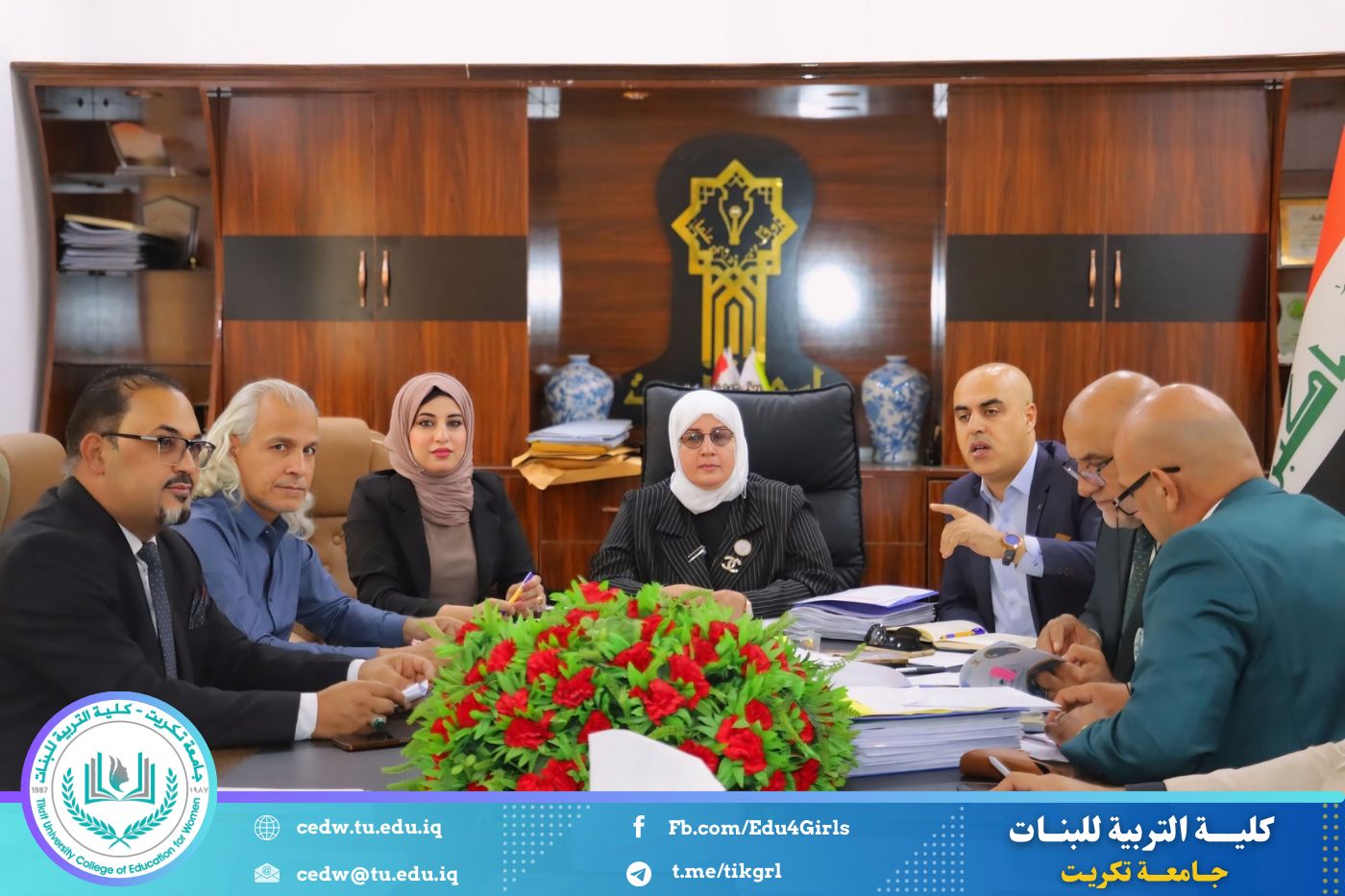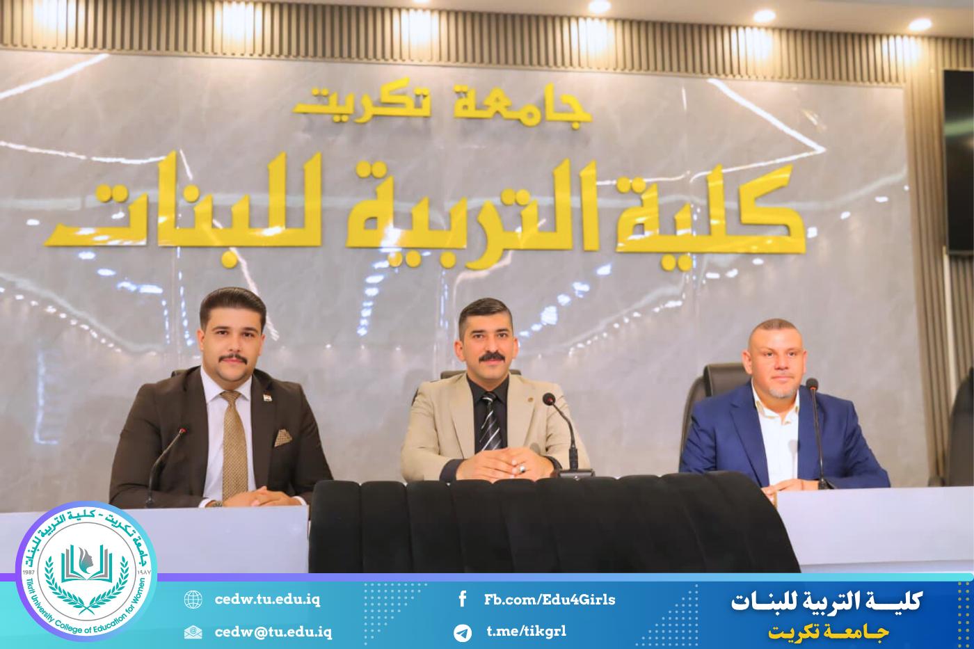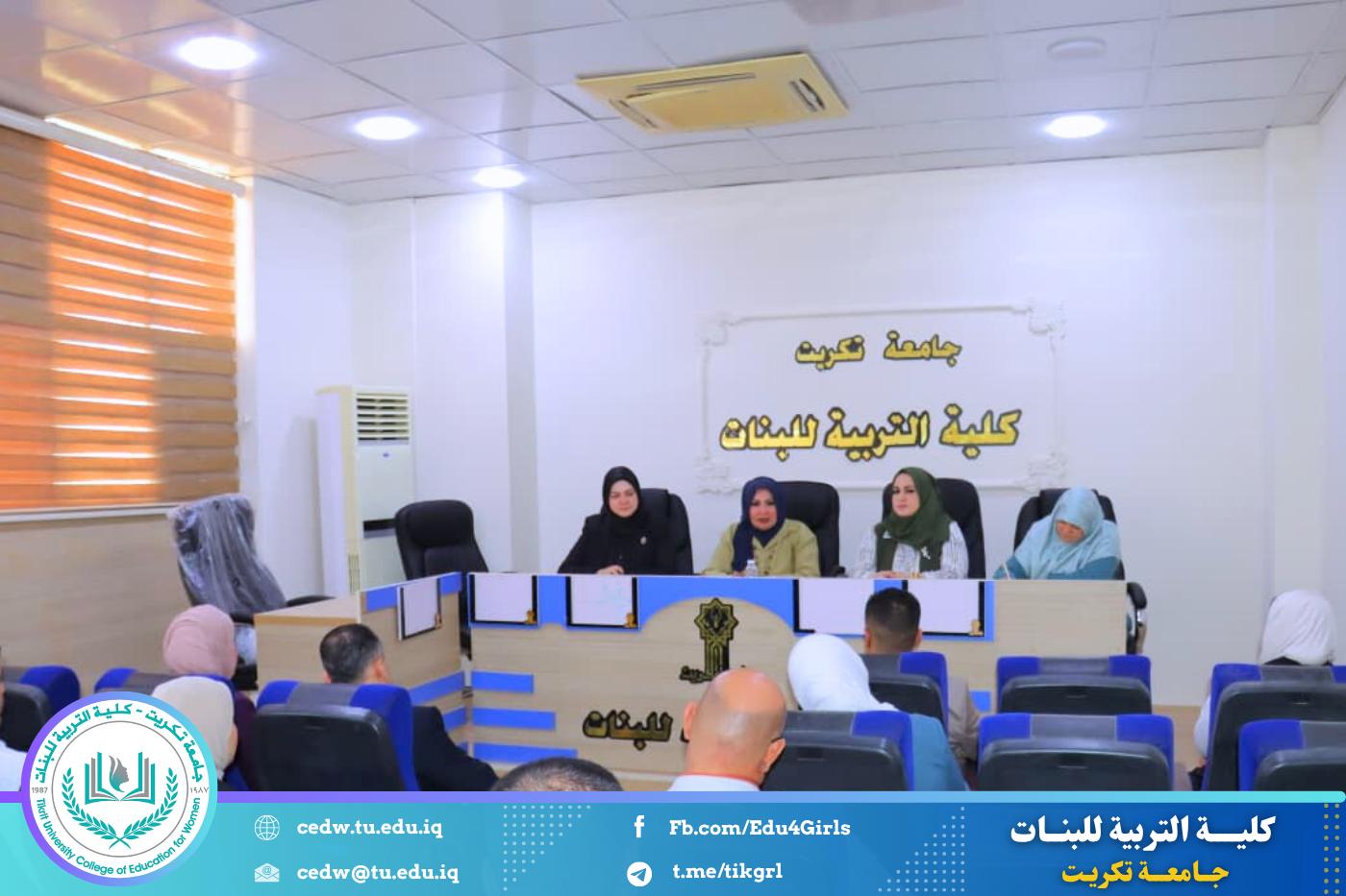 لكلية التربية للبنات مكانة علمية رفيعة فهي إحدى أهم معالم الدراسات الأكاديمية للأقسام الإنسانية والعلمية في جامعة تكريت ، وتقع في وسط مدينة تكريت خارج الحرم الجامعي ، وتضم بنايتين أحداهما تضم الأقسام العلمية والأخرى للأقسام الإنسانية والتي فيها المقر الإداري لعمادة الكلية .تأسست الكلية في العام الذي تأسست فيه جامعة تكريت وهو عام 1987 ، وكانت بمثابة نواة لها وهي بذلك تعدّ أقدم مؤسسة علمية بين أقرانها، وقد أطلق عليها اسم الكلية الأم تيمناً بذلك فغدت معلماً بارزاً لتحقيق أهداف وطموحات وخطط التعليم العالي القائمة على إعداد كادر نسوي يضطلع بمهام التعليم الثانوي في عموم القطر إلى جانب إعداد باحثين متخصصين في المجال العلمي والإنساني وباختصاصات متنوعة لأقسامها الثمانية حتى أضحت رافداً مهماً لإعداد ملاكات علمية وطنية مقتدرة تصب في حركة البحث العلمي وخدمة المجتمع المحلي والعربي تم قبول الطالبات فيها في العام الدراسي 1988- 1989، ولثلاثة أقسام هي الرياضيات واللغة العربية واللغة الانكليزية ، ثم تلتها أقسام الكيمياء وعلوم الحياة ثم علوم القرآن والعلوم التربوية والنفسية و قسم التأريخ وأخيراً قسم الاقتصاد المنزلي الذي يعدّ التفسير الفعلي لمعنى (كلية التربية للبنات) . وتحوي الكلية مرافق متعددة ففيها مكتبة ضخمة تحوي مجاميعاً من الكتب والمطبوعات والمواد الثقافية اأخرى ، فهي تحوي (15575) كتاباً، و(265) دورية، و(1204 )رسالة وأطرروحة و (175 ) قرصاً مضغوطاً
