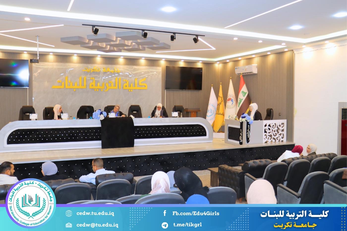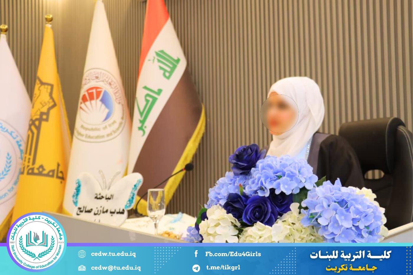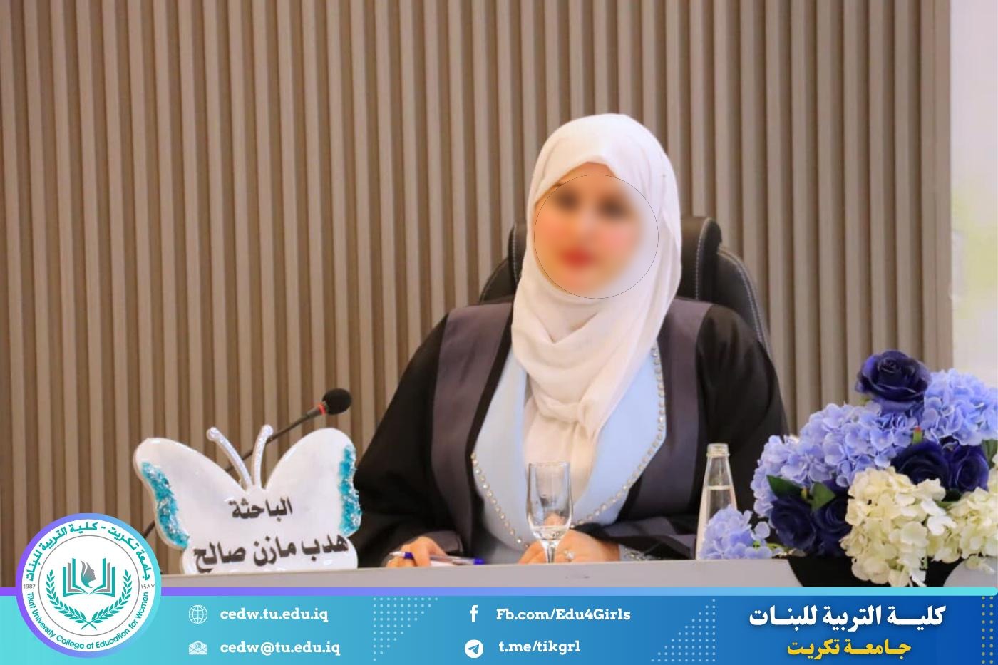 نوقشت في كلية التربية للبنات – قسم اللغة الإنكليزية، اليوم الخميس الموافق (6 / 11 / 2025)، على قاعة المرحوم الأستاذ الدكتور جايد زيدان في عمادة الكلية، رسالة الماجستير المقدمة من الطالبة هدب مازن صالح، والموسومة: