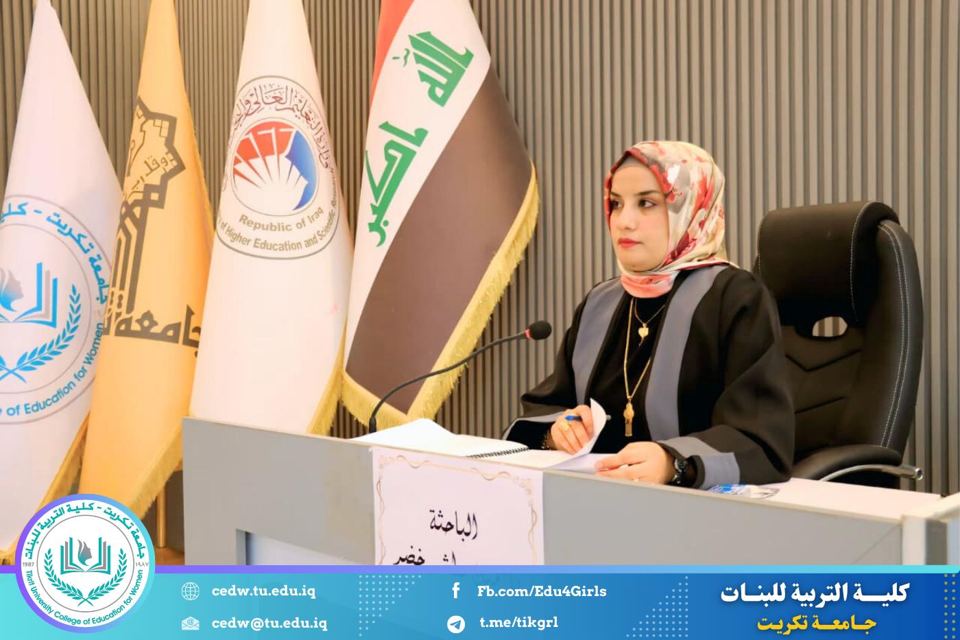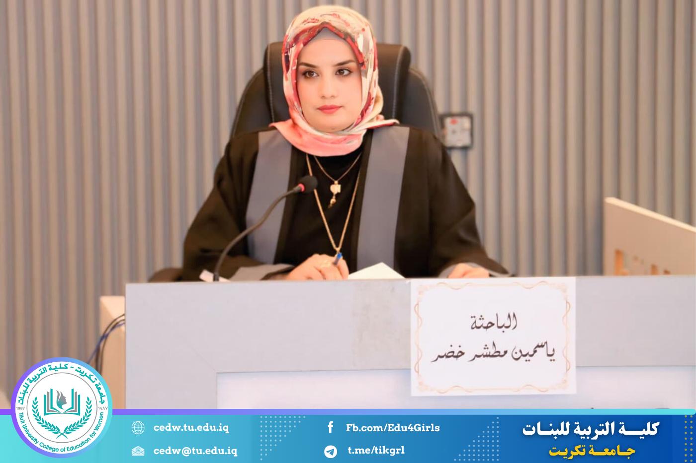 نوقشت في كلية التربية للبنات – قسم الكيمياء، اليوم الأحد الموافق 28 / 9 / 2025، على قاعة المرحوم الأستاذ الدكتور جايد زيدان في عمادة الكلية، أطروحة الدكتوراه المقدمة من الطالبة ياسمين مطشر خضر، والموسومة: