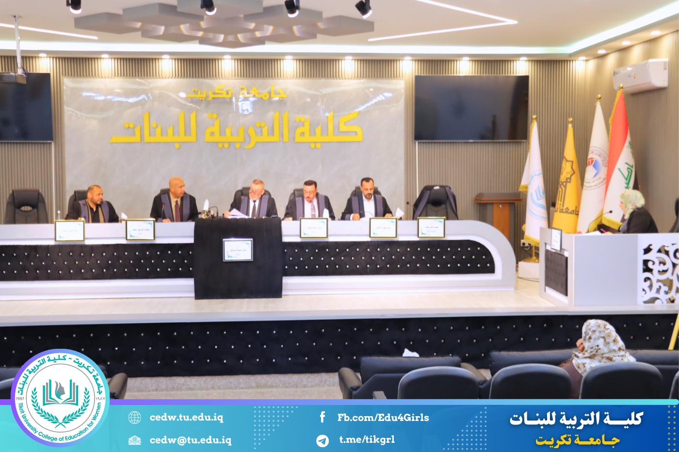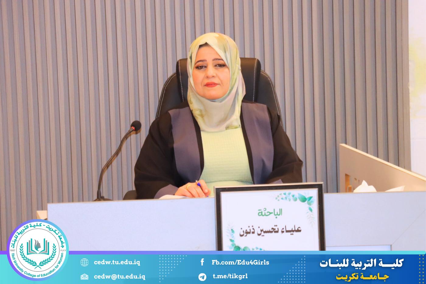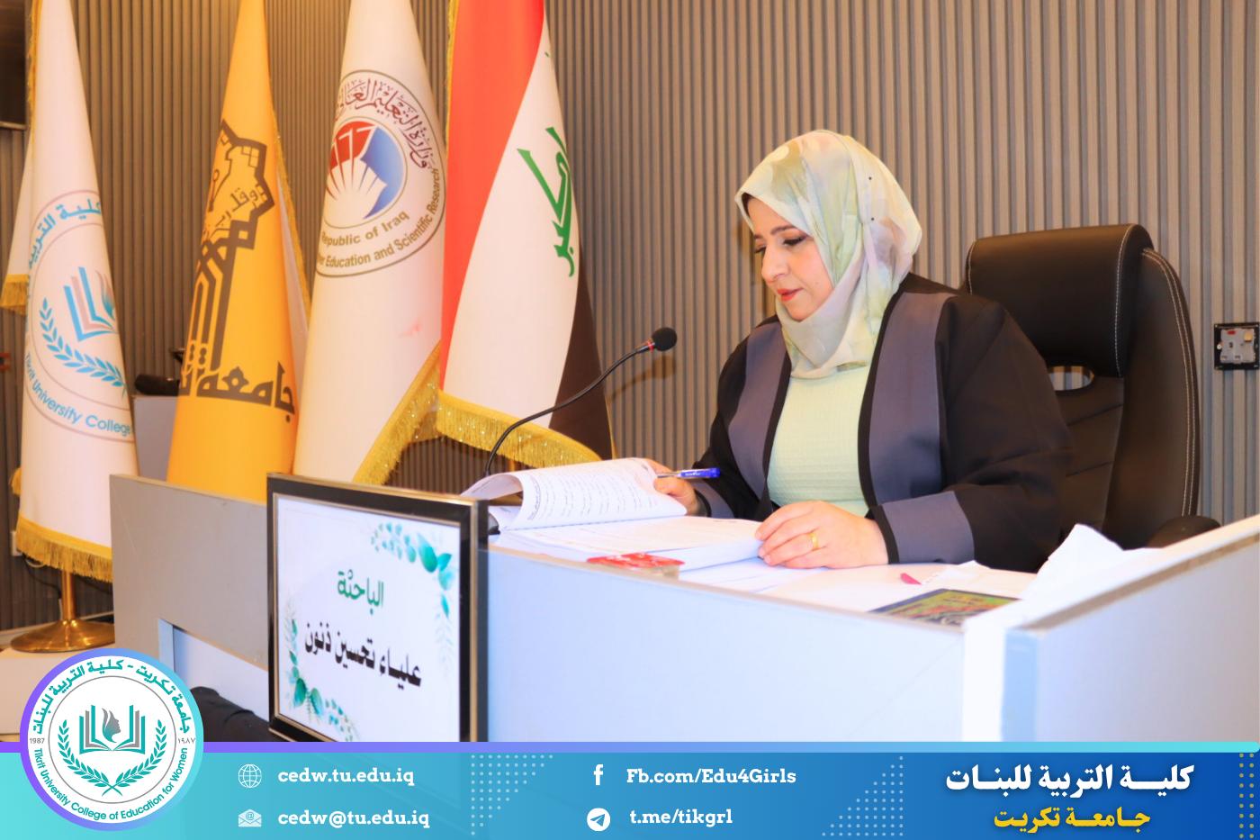 نوقشت في كلية التربية للبنات – قسم علوم القرآن، يوم الأربعاء الموافق 25 / 3 / 2026، وعلى قاعة المرحوم الأستاذ الدكتور جايد زيدان في عمادة الكلية، أطروحة الدكتوراه المقدّمة من الطالبة علياء تحسين دنون، والموسومة: