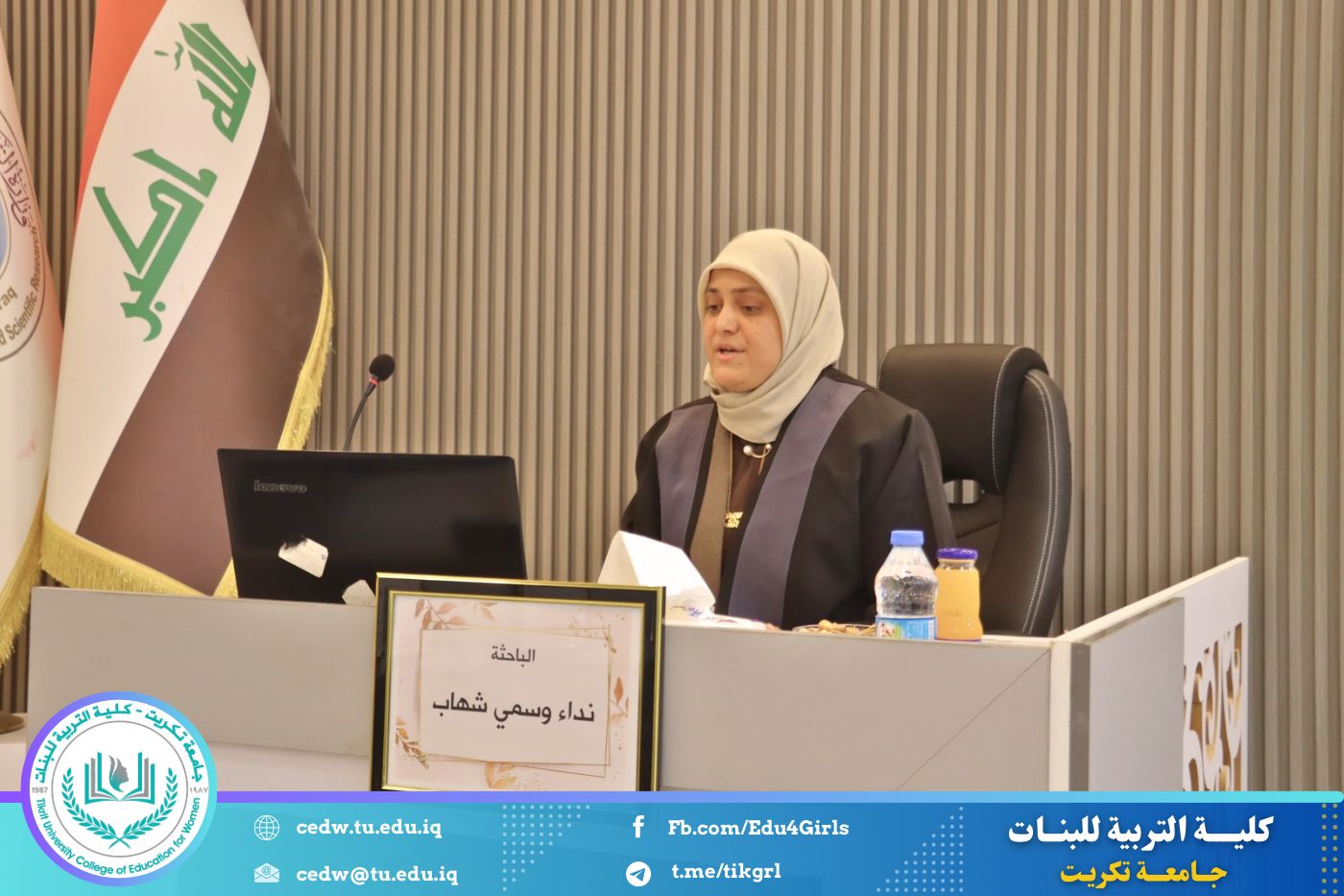 نوقشت في كلية التربية للبنات – قسم علوم الحياة، يوم الخميس الموافق (20 / 11 / 2025)، على قاعة المرحوم الأستاذ الدكتور جايد زيدان في عمادة الكلية، أطروحة الدكتوراه المقدّمة من الطالبة نداء وسمي شهاب، والموسومة: