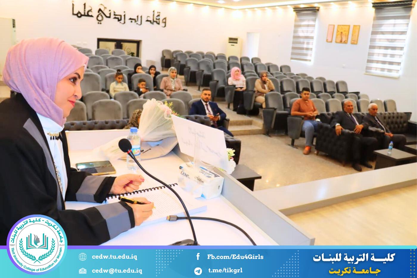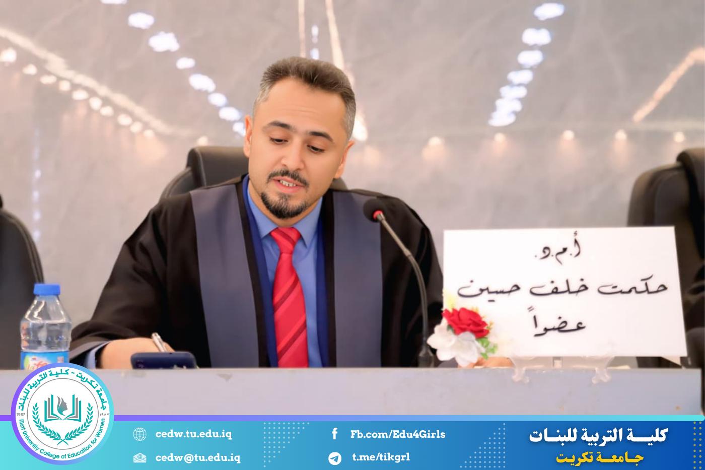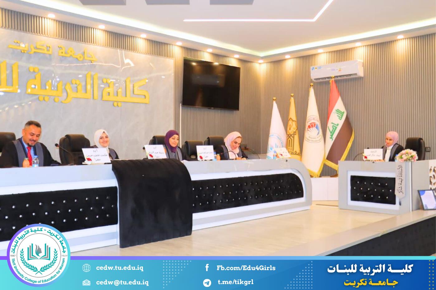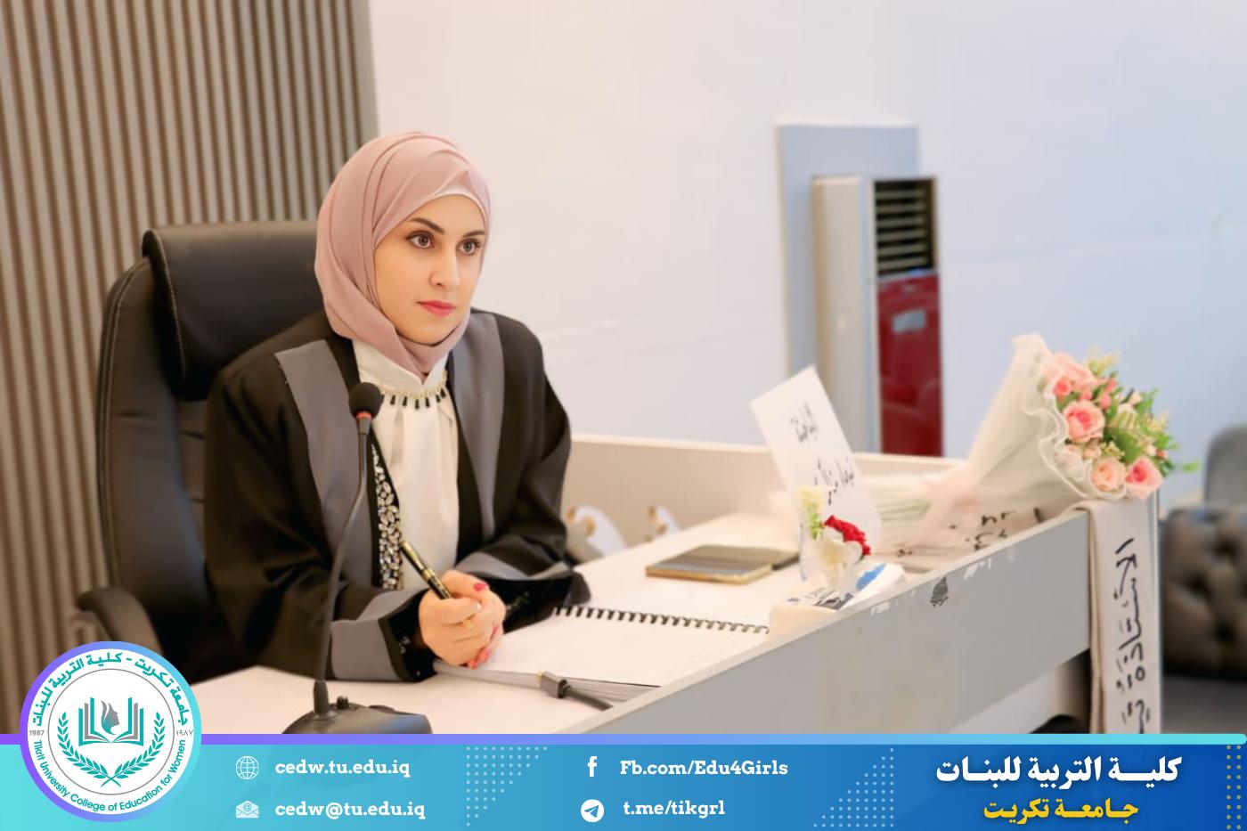 نوقشت في كلية التربية للبنات – قسم اللغة الإنكليزية، يوم الاثنين الموافق 20 / 10 / 2025، على قاعة المرحوم الأستاذ الدكتور جايد زيدان في عمادة الكلية، رسالة الماجستير المقدَّمة من الطالبة تيماء شاكر محمود، والموسومة: