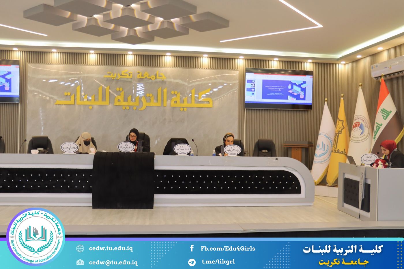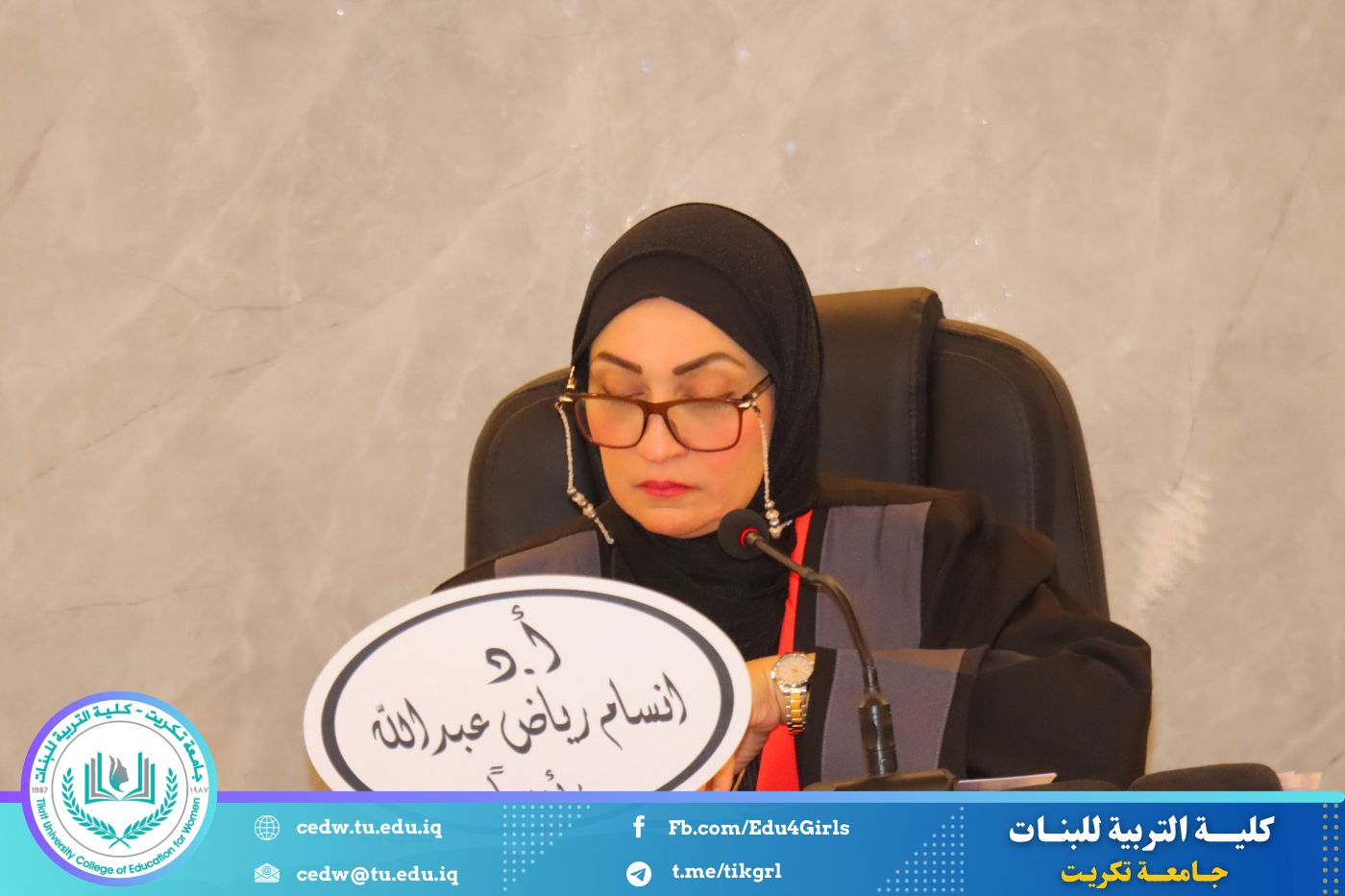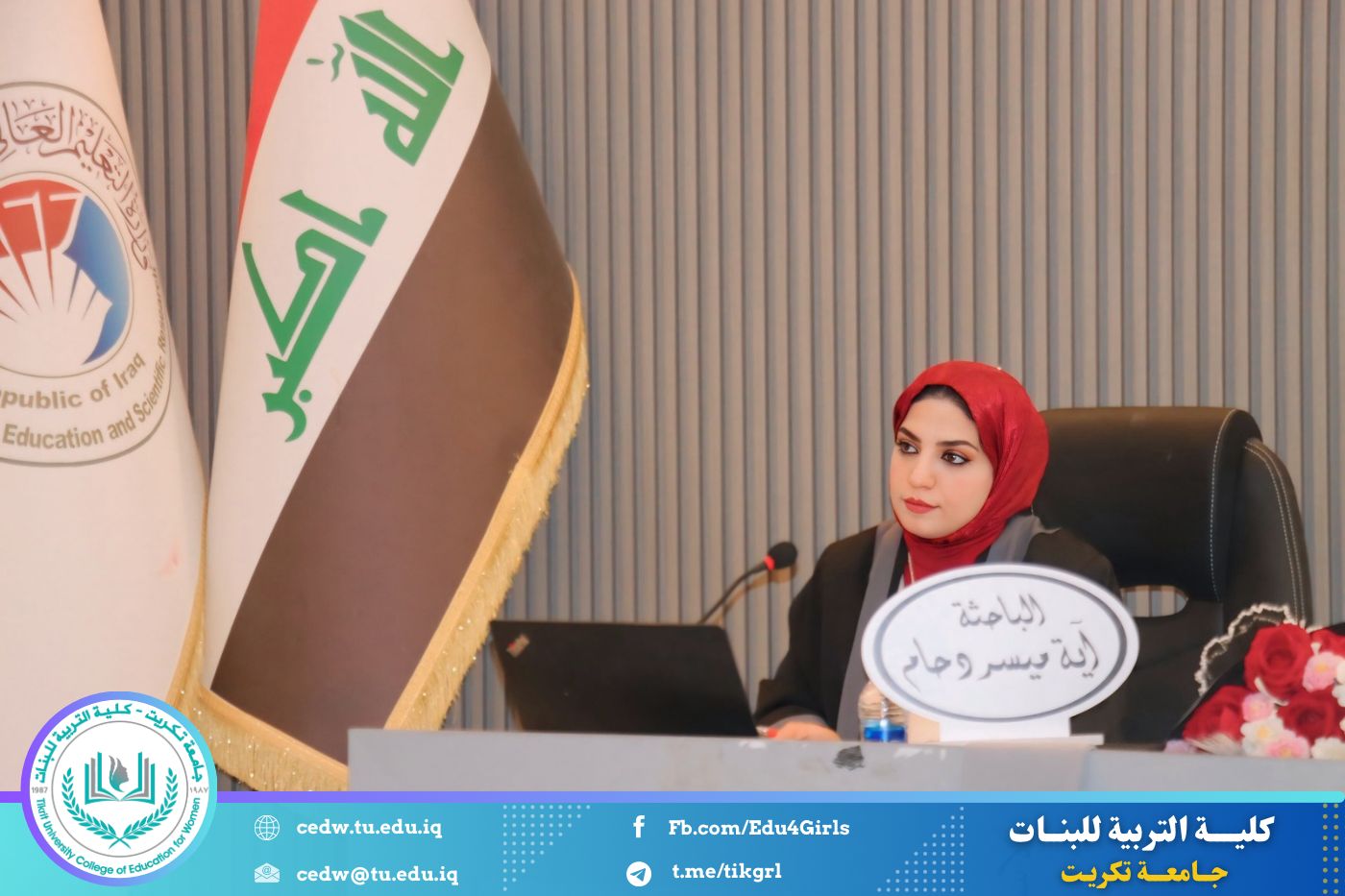 شهدت كلية التربية للبنات في جامعة تكريت / قسم اللغة الإنكليزية، صباح يوم الاثنين الموافق 7 / 10 / 2025، مناقشة رسالة الماجستير المقدّمة من الطالبة (آية ميسر دحام)، والموسومة:
