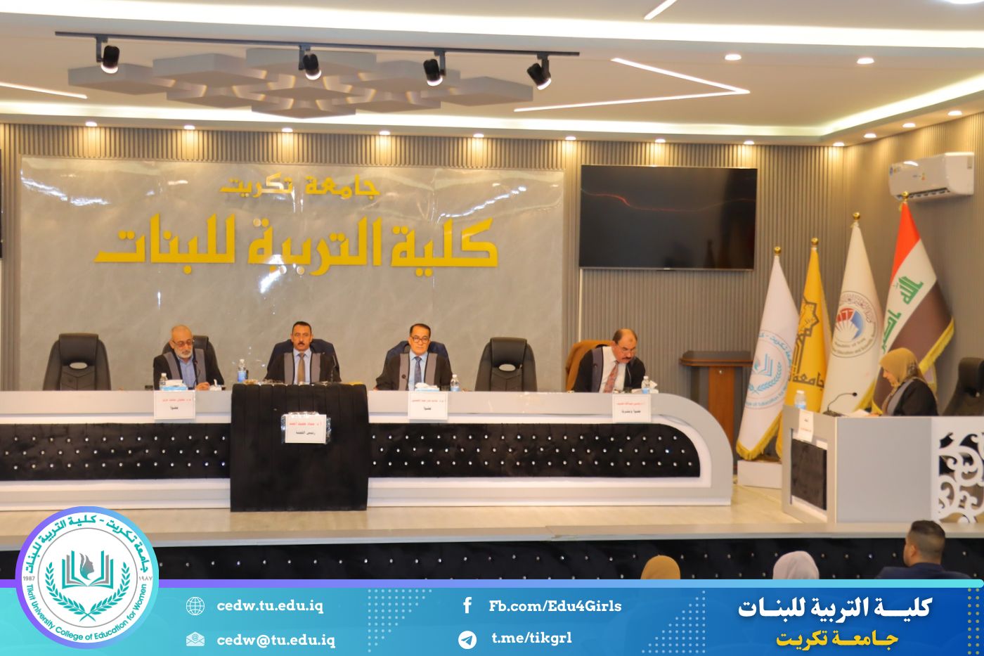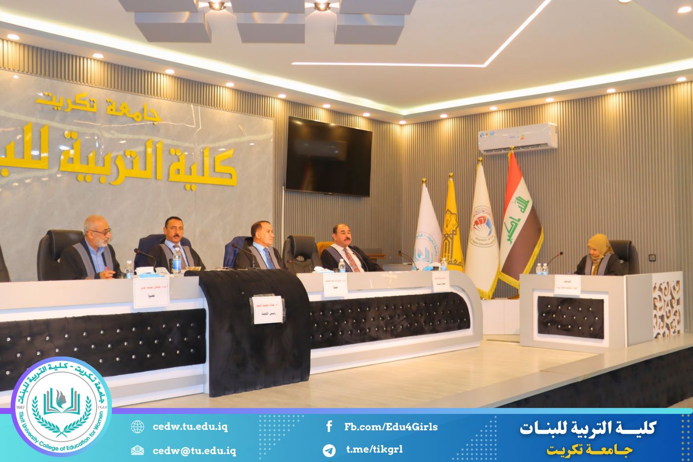 نوقشت في كلية التربية للبنات – قسم اللغة العربية بجامعة تكريت، يوم الأحد الموافق ٢٦ / ١٠ / ٢٠٢٥، على قاعة المرحوم الأستاذ الدكتور جايد زيدان في عمادة الكلية، رسالة الماجستير المقدَّمة من الطالبة (إسراء يوسف عبد ربه)، والموسومة: