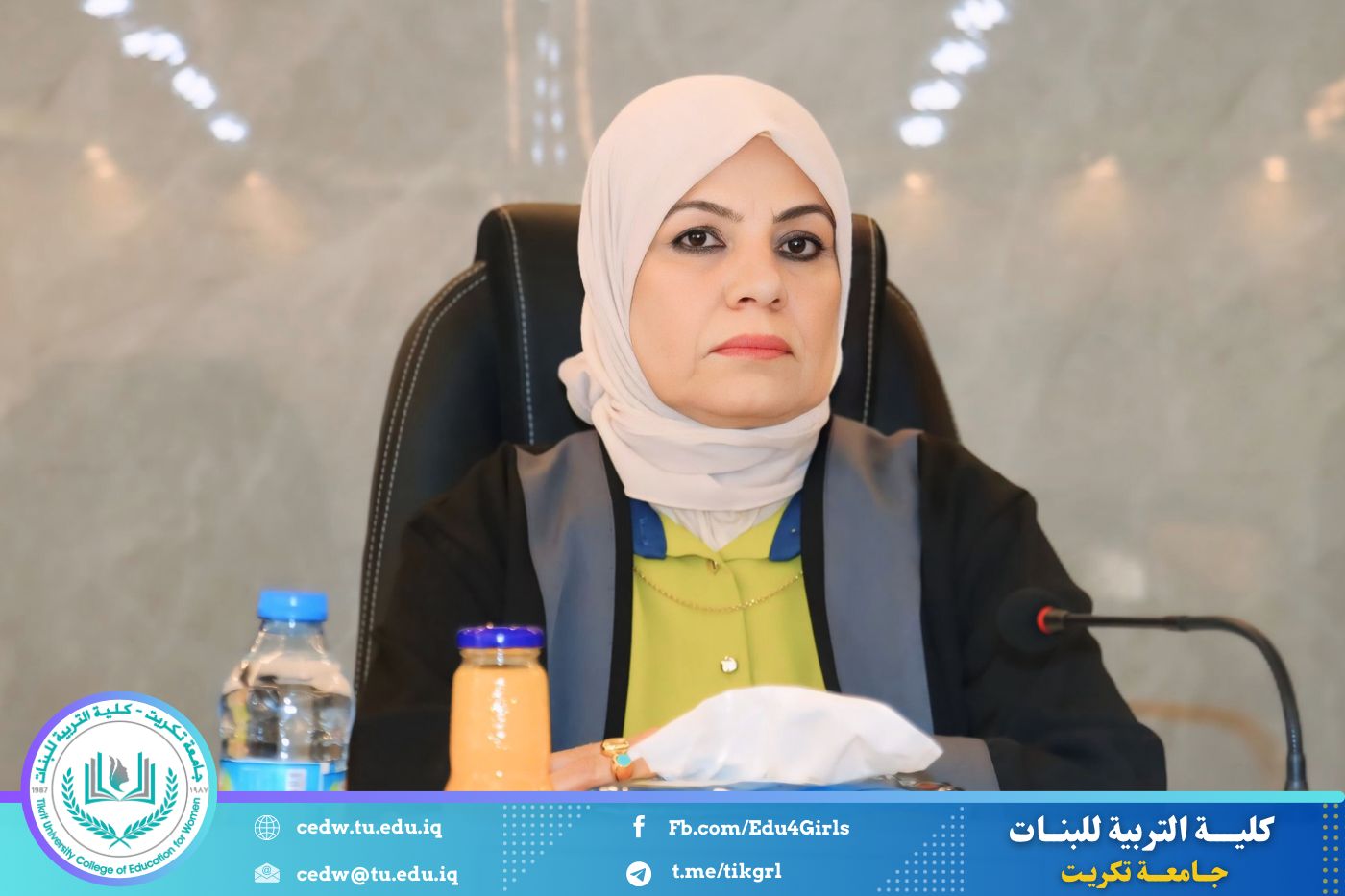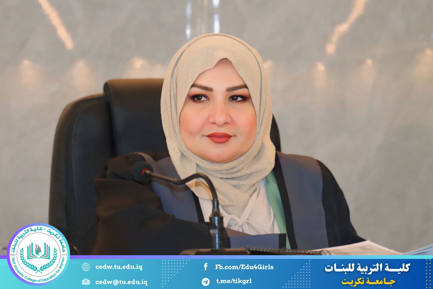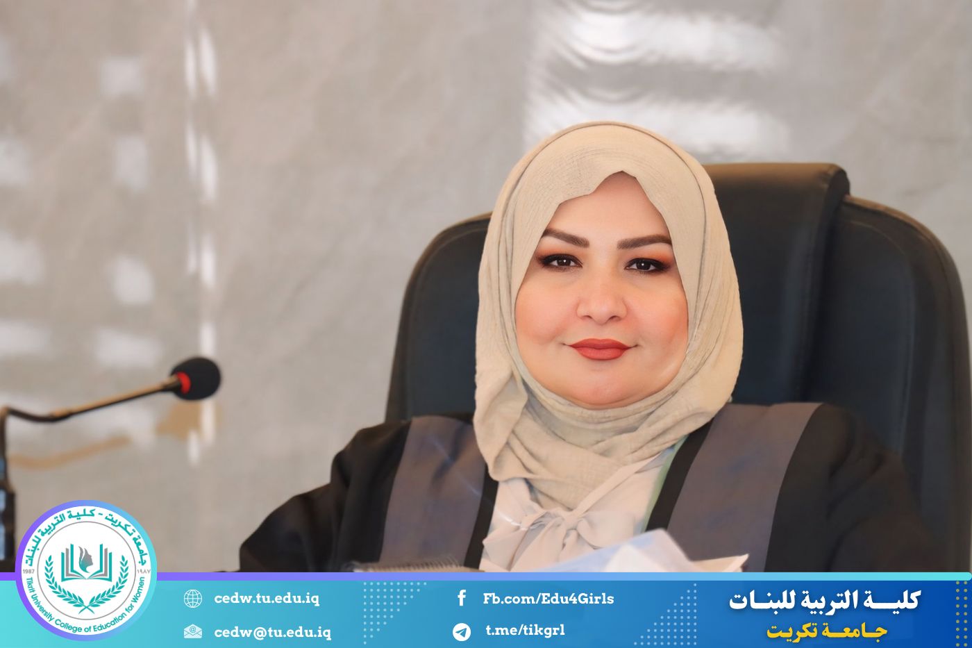 ترأست الأستاذ الدكتورة نجلاء عبد الحسين عليوي عميد كلية التربية للبنات ، اليوم الاثنين الموافق (29 / 9 / 2025)، جلسة مناقشة رسالة الماجستير المقدمة من الطالبة خيرية توفيق محمود في قسم اللغة العربية، والموسومة:
