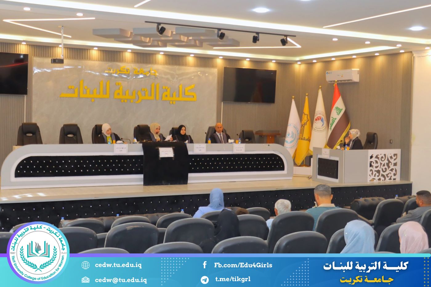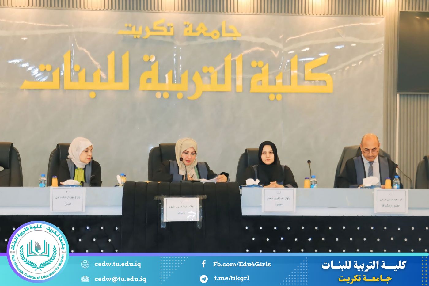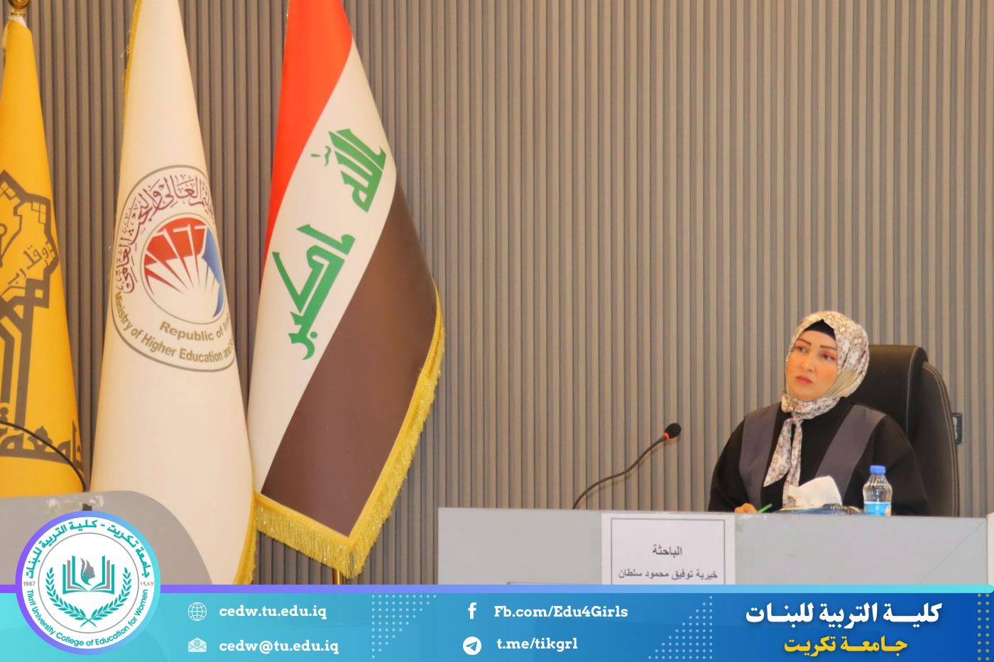 ترأست الأستاذ الدكتورة نجلاء عبد الحسين عليوي عميد كلية التربية للبنات ، اليوم الاثنين الموافق (29 / 9 / 2025)، جلسة مناقشة رسالة الماجستير المقدمة من الطالبة خيرية توفيق محمود في قسم اللغة العربية، والموسومة: