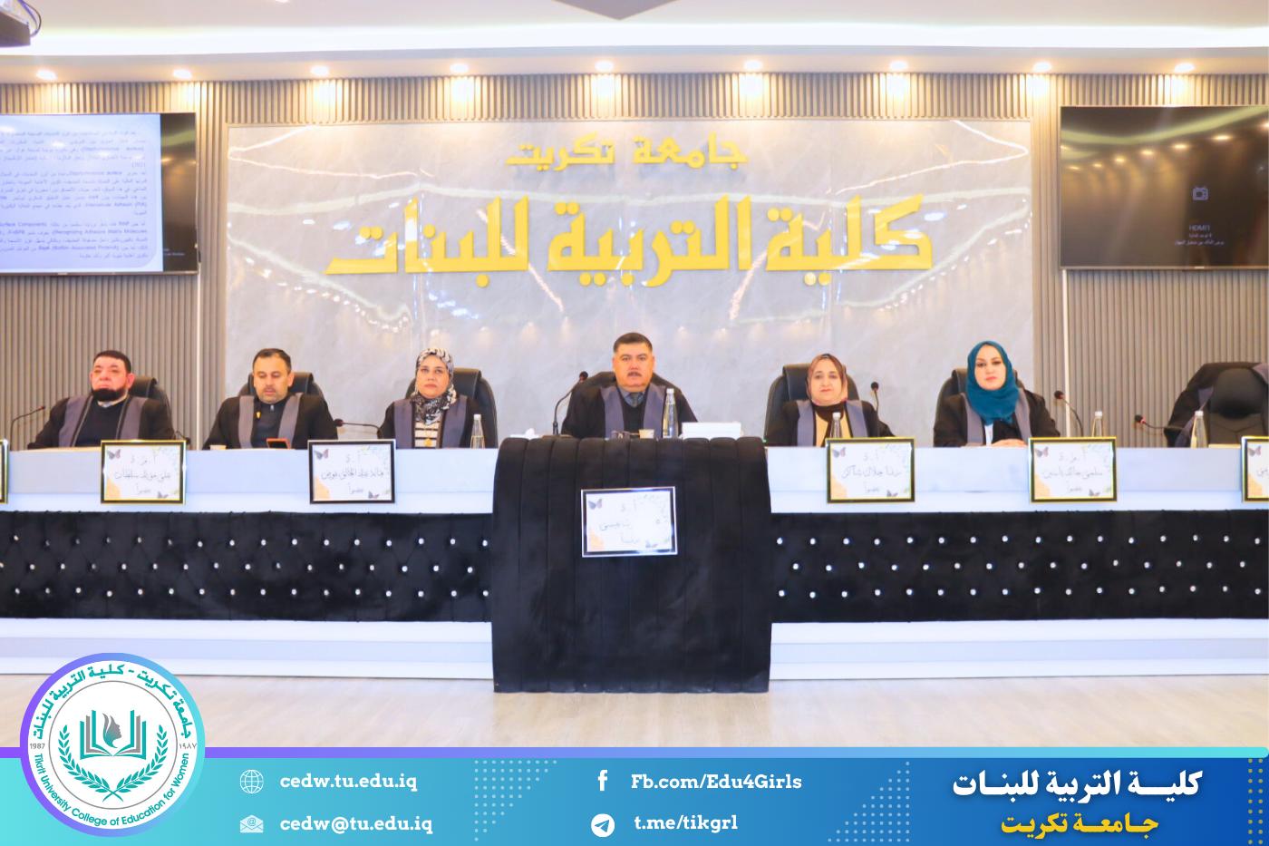 وفي ختام الجلسة، قررت اللجنة قبول الأطروحة ومنح الطالبة وسن صباح محمد شهادة الدكتوراه في علوم الحياة بعد إجراء التعديلات التي أوصت بها اللجنة