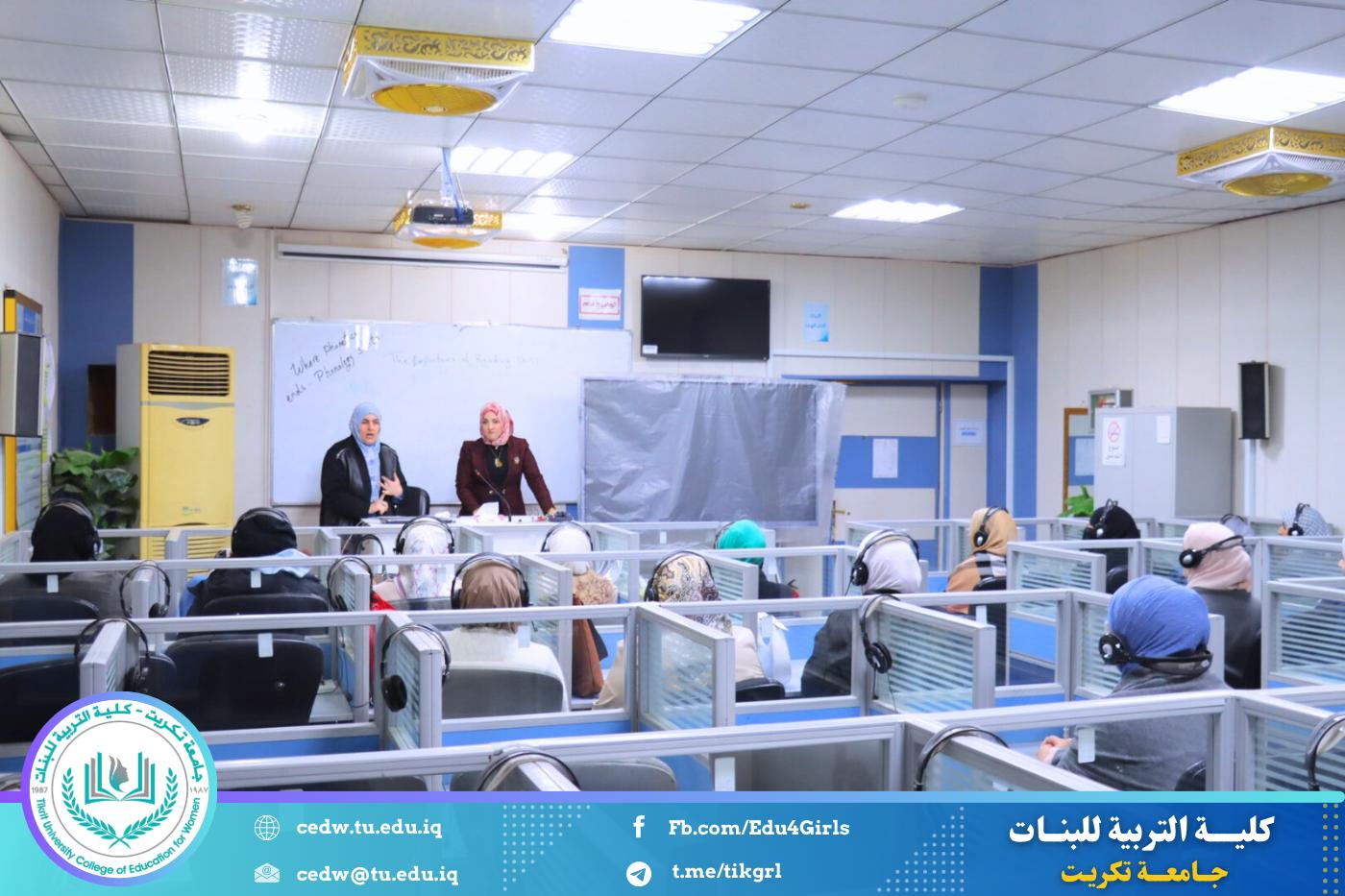 نظّم قسم اللغة الإنكليزية في كلية التربية للبنات – جامعة تكريت، وبالتعاون مع مركز التعليم المستمر، دورة علمية بعنوان The Importance of Reading Skills، وذلك على مدى يومين، يومي الاثنين والثلاثاء الموافقين 9–10 / 2 / 2026، وعلى رحاب مختبر الصوت في قسم اللغة الإنكليزية.