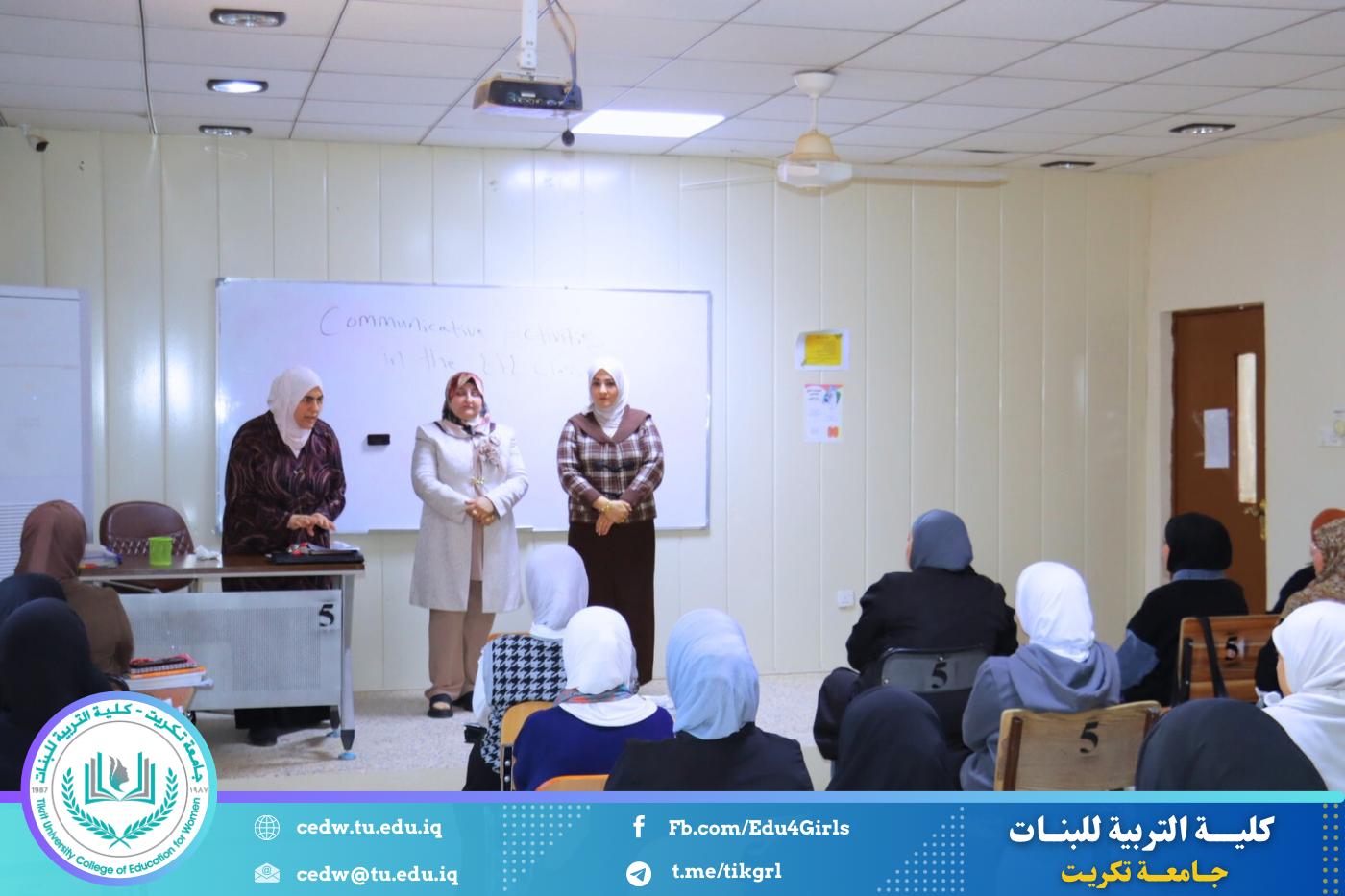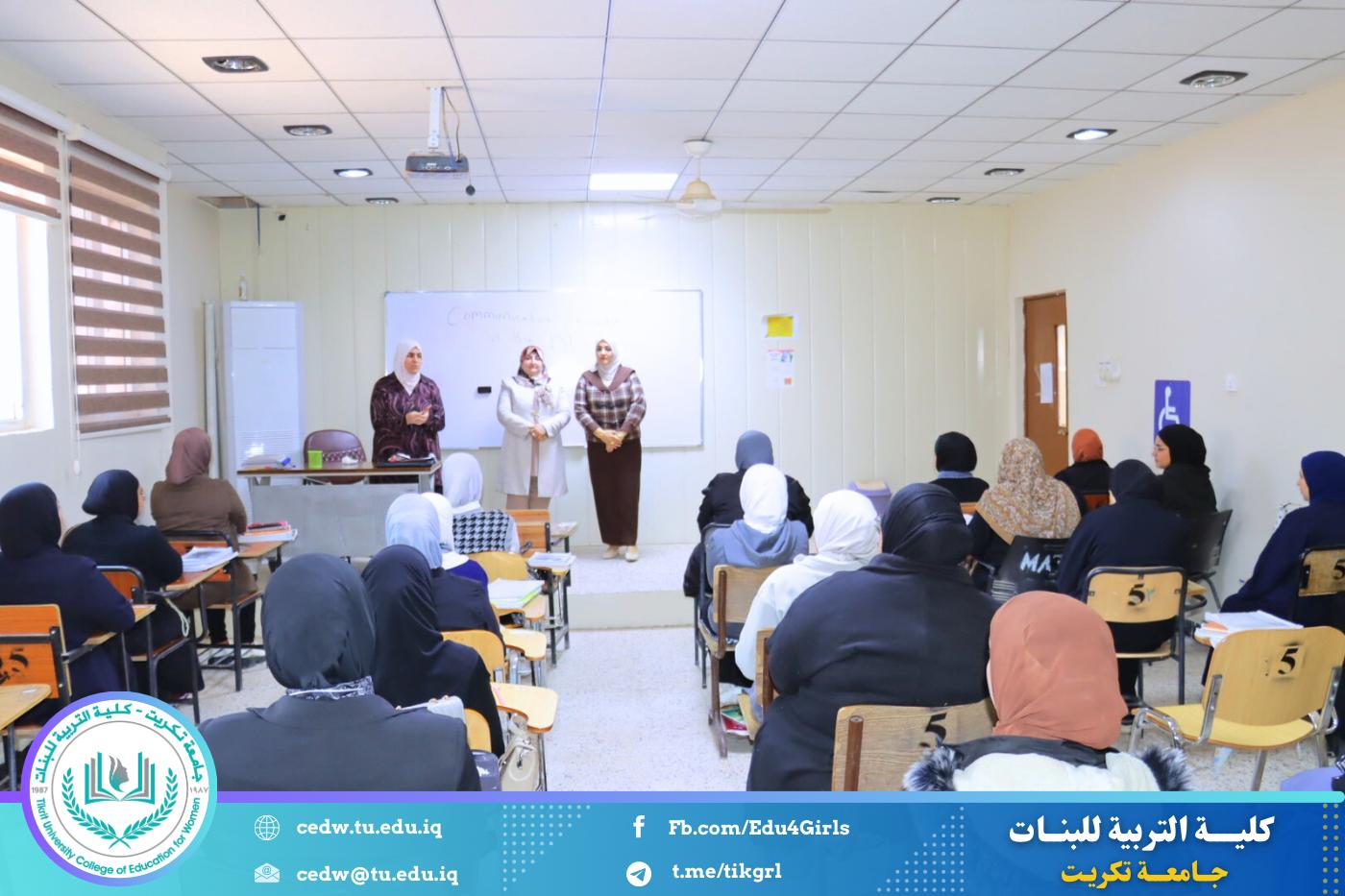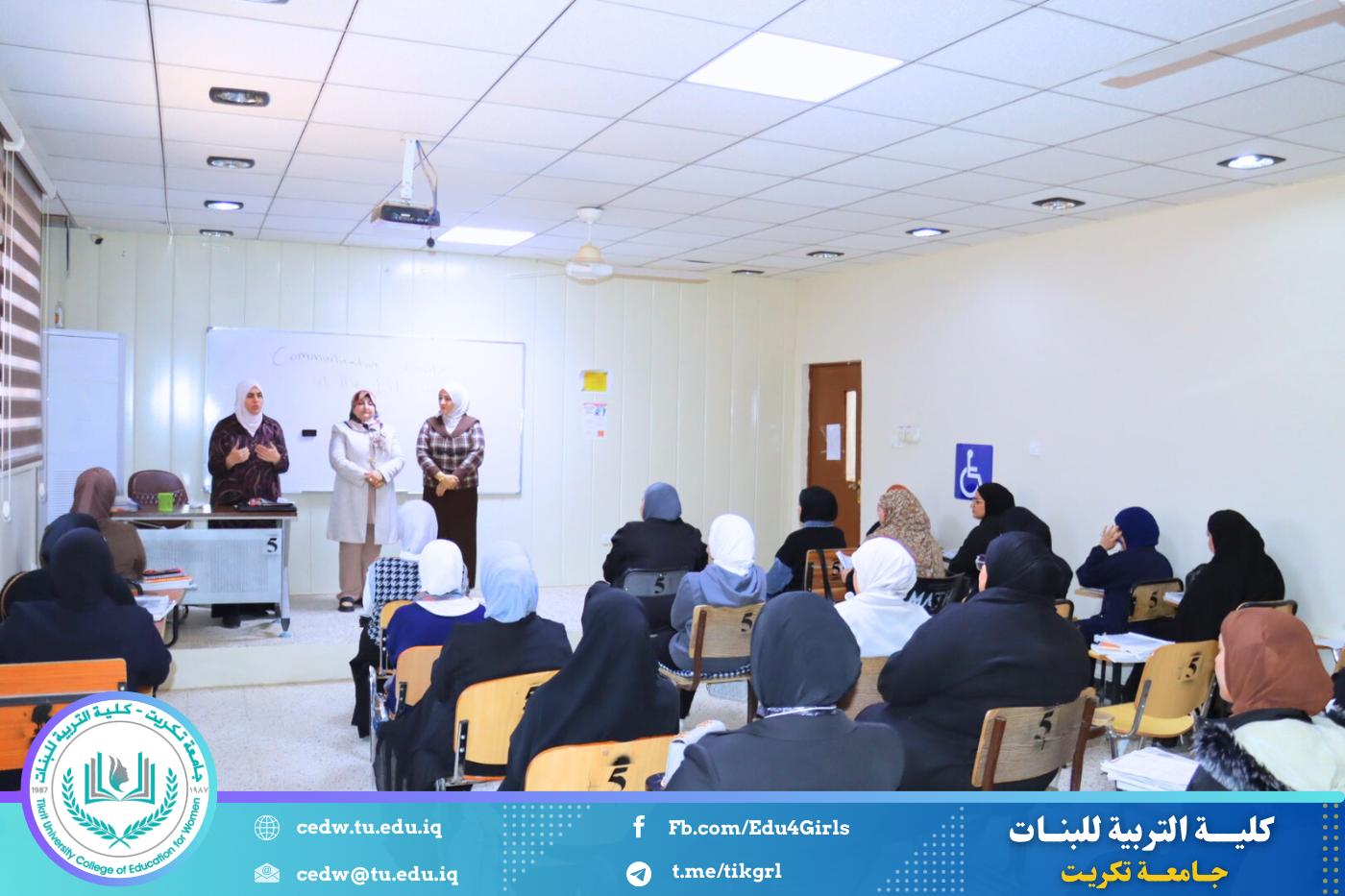 أقامت كلية التربية للبنات – قسم اللغة الإنكليزية، بالتعاون مع مركز التعليم المستمر في جامعة تكريت، دورة تدريبية بعنوان (Communicative Activities in the EFL Classroom)، وذلك يومي الثلاثاء والأربعاء الموافق 10–11 / 3 / 2026، في قاعات قسم اللغة الإنكليزية.