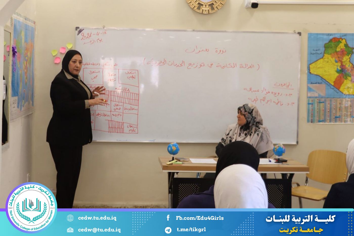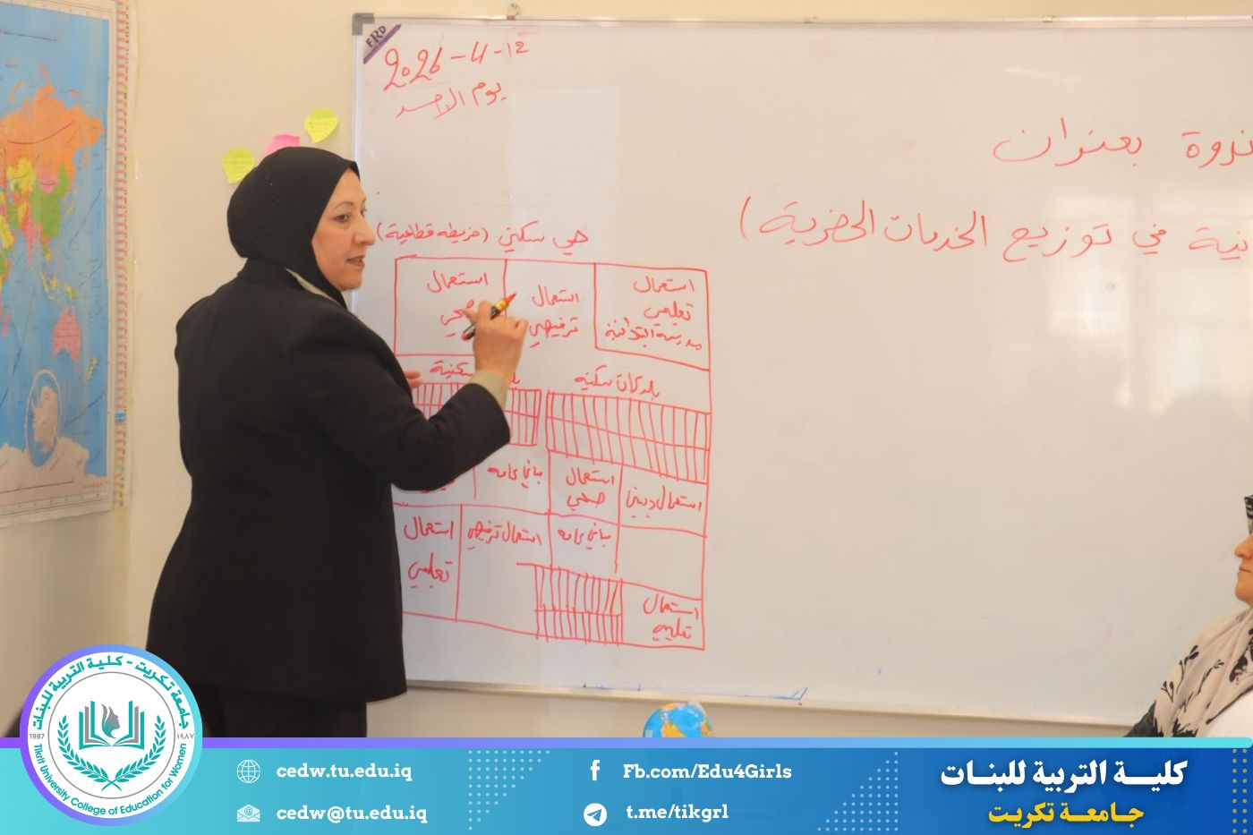 أقامت كلية التربية للبنات – قسم الجغرافية، وبالتعاون مع مركز التعليم المستمر، ندوة علمية بعنوان (العدالة المكانية في توزيع الخدمات الحضرية)، وذلك يوم الأحد الموافق 12 / 4 / 2026، على قاعة المرحلة الثانية.