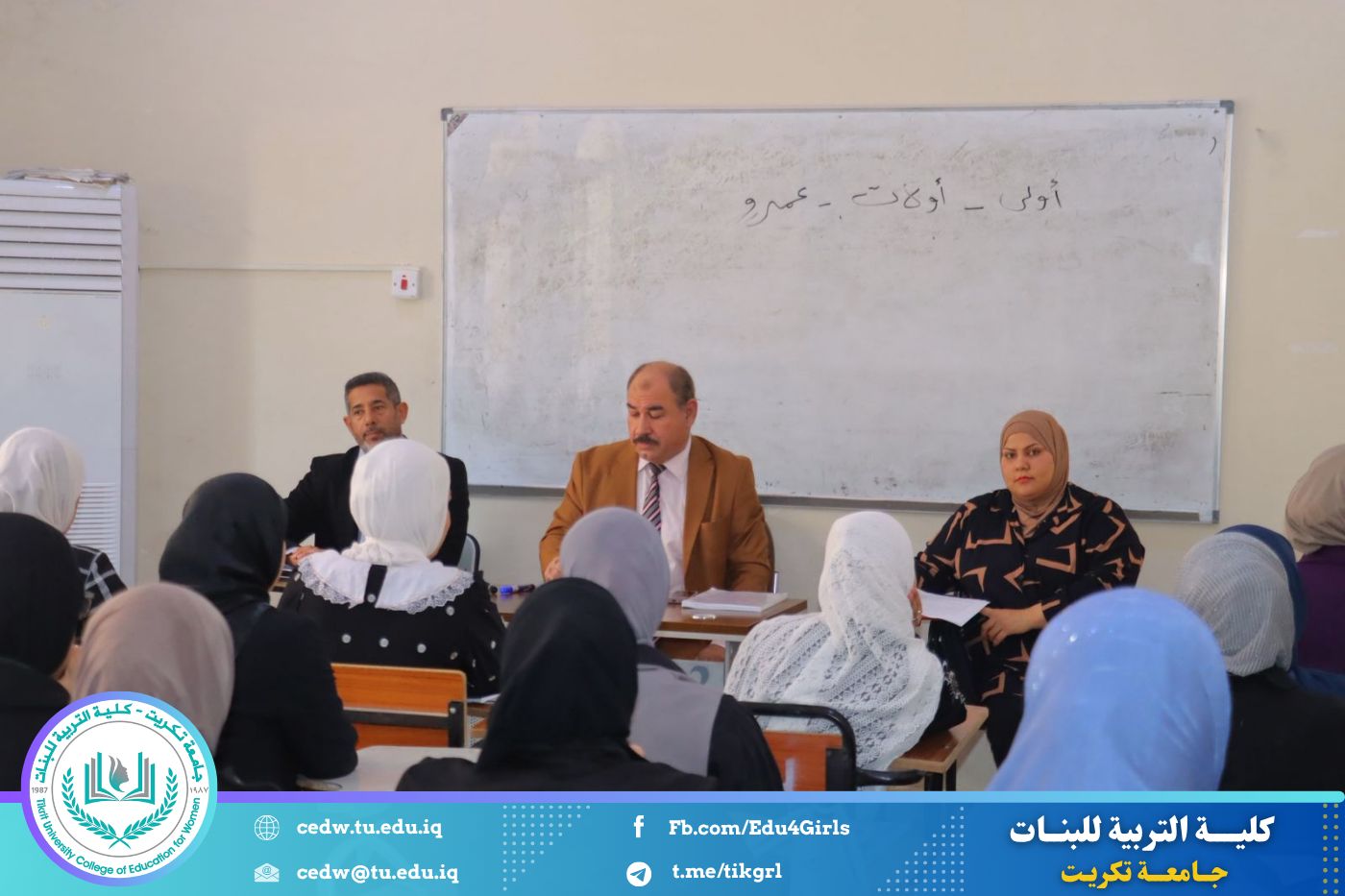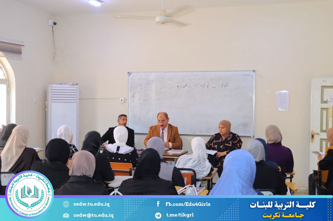 أقامت كلية التربية للبنات – قسم اللغة العربية، وبالتعاون مع مركز التعليم المستمر، دورة علمية بعنوان (العربية لغة القرآن ومكانتها بين اللغات)، وذلك يومي الأحد والاثنين الموافقين 12–13 / 4 / 2026، على قاعة المرحلة الثالثة في قسم اللغة العربية.