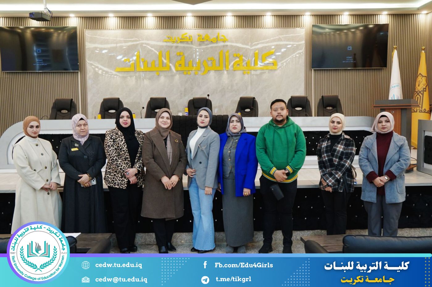 نظمت وحدة التأهيل والتوظيف والمتابعة في كلية التربية للبنات جامعة تكريت، وبالتعاون مع المديرية العامة لتربية صلاح الدين، ندوة علمية بعنوان «التطبيق التربوي في المدارس: بين آليات التنفيذ الفعّالة والتحديات الواقعية»، وذلك صباح يوم الأحد الموافق ٨ / ٢ / ٢٠٢٦، على قاعة المرحوم الأستاذ الدكتور جايد زيدان.