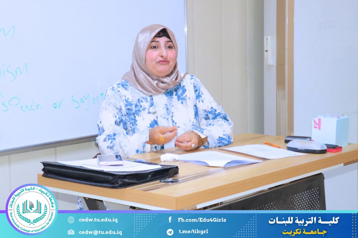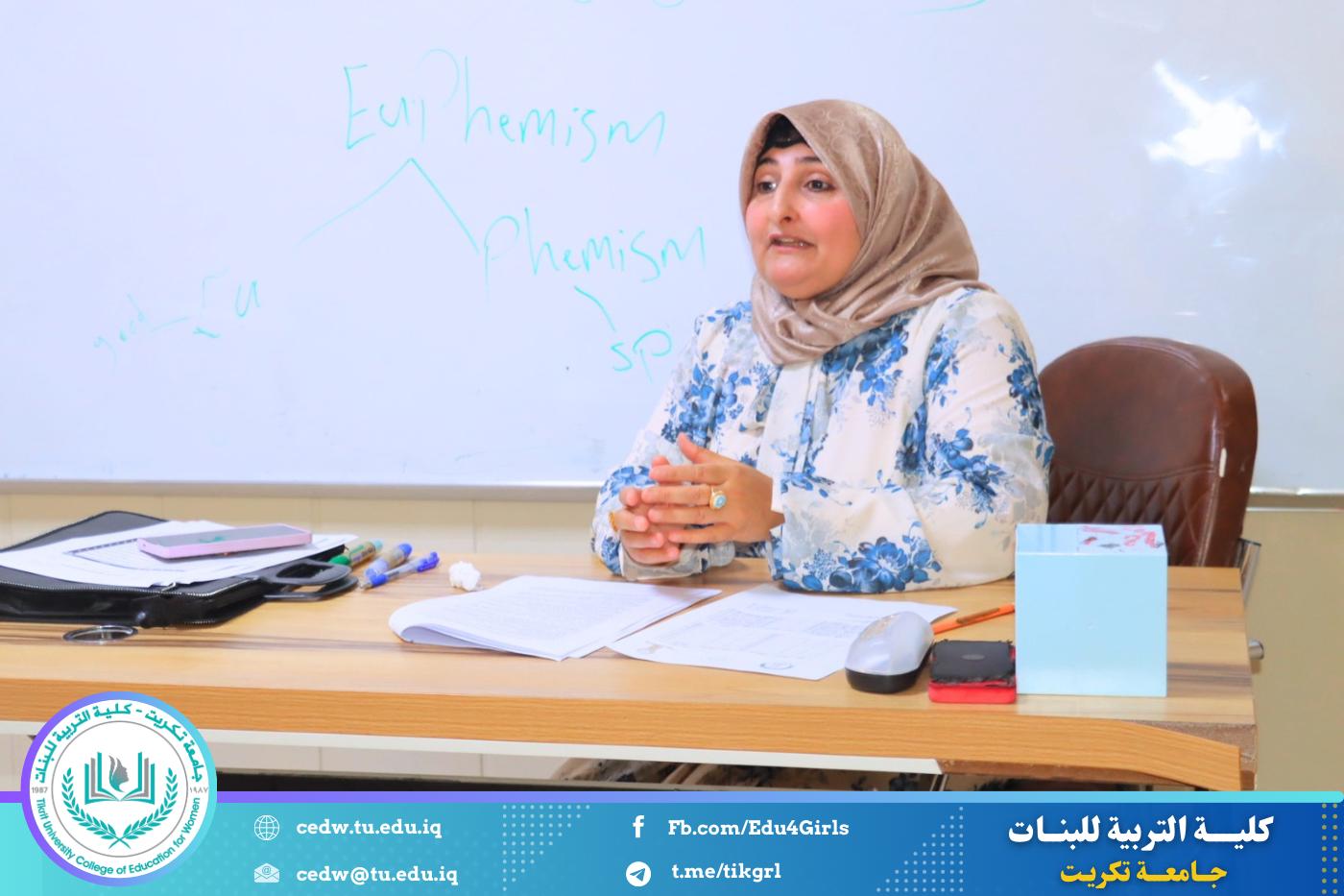 أقامت كلية التربية للبنات – قسم اللغة الإنجليزية، وبالتعاون مع مركز التعليم المستمر، ندوة علمية بعنوان (The Role of Euphemism in Forming Language Teaching)، وذلك يوم الاثنين الموافق 12 / 4 / 2026، على قاعة المرحلة الثانية في قسم اللغة الإنجليزية.