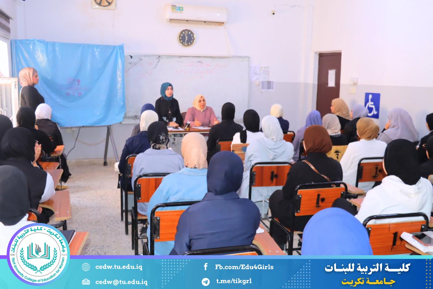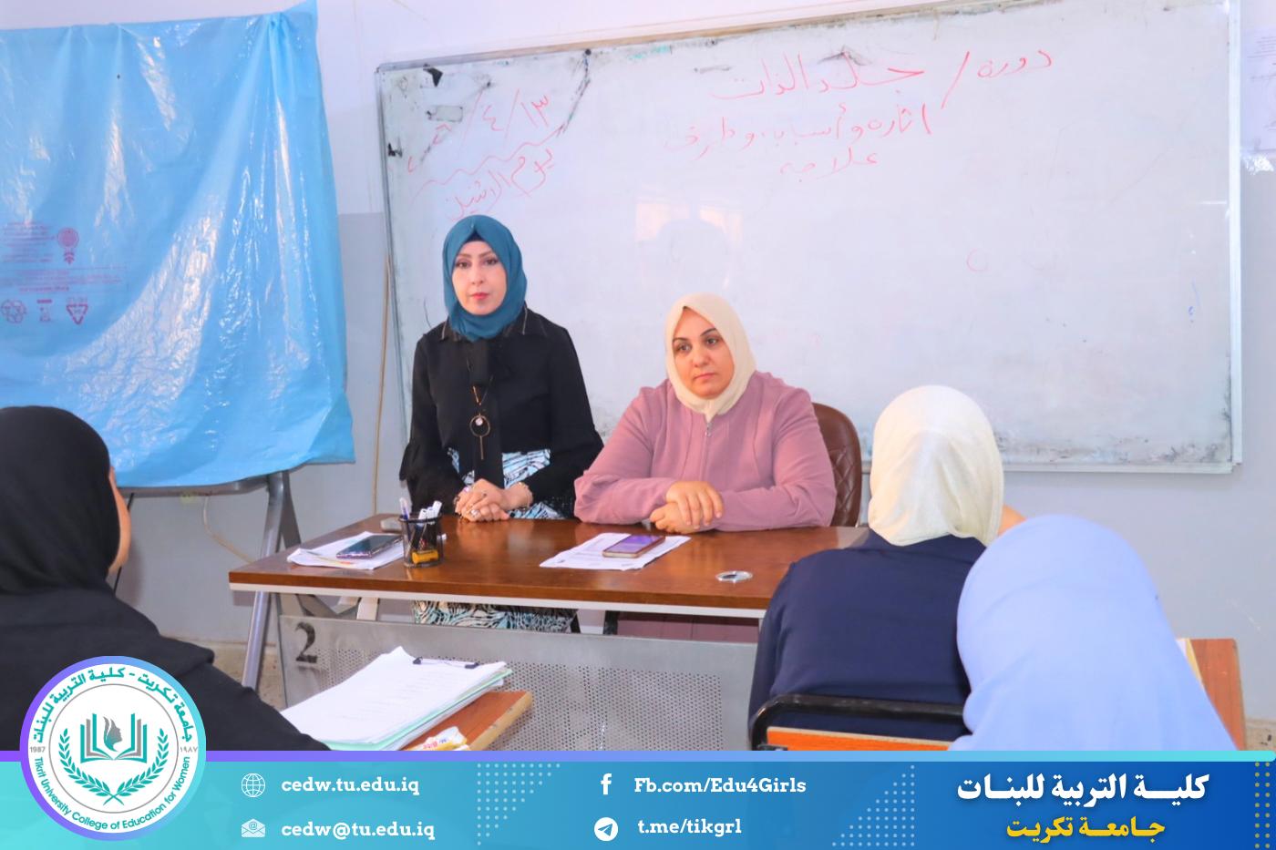 أقامت كلية التربية للبنات – قسم العلوم التربوية والنفسية، وبالتعاون مع مركز التعليم المستمر، دورة إرشادية بعنوان (جلد الذات: أسبابه وطرق علاجه)، وذلك يومي الأحد والاثنين الموافقين 12–13 / 4 / 2026، على قاعة المرحلة الأولى في قسم العلوم التربوية والنفسية.