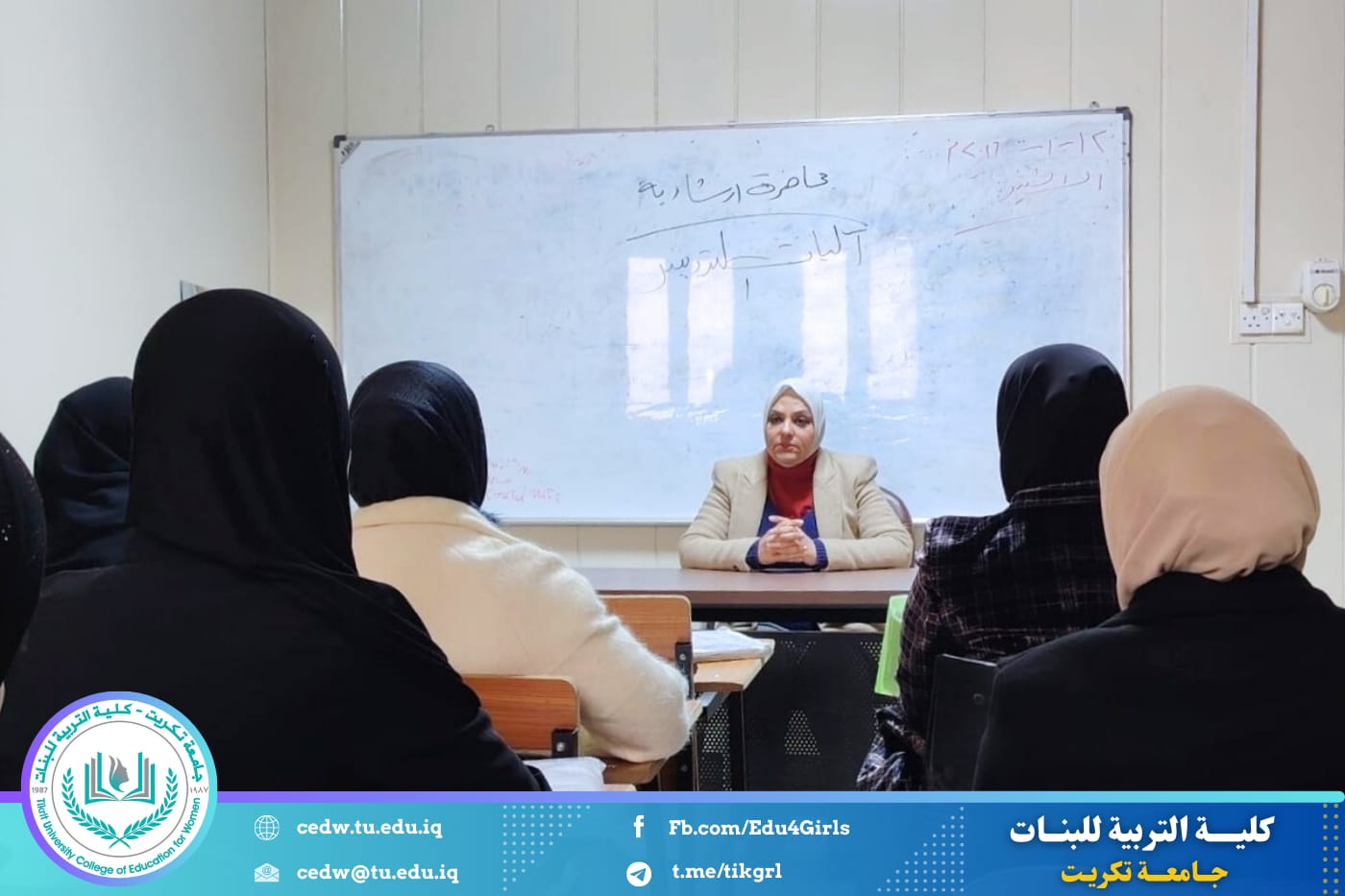 وهدفت الندوة إلى تعريف الطالبات بآليات التدريس الحديثة، وبيان أهميتها في تطوير العملية التعليمية، فضلًا عن التأكيد على ضرورة اعتماد آليات التدريس بوصفها جزءًا لا يتجزأ من العملية التعليمية، بما يسهم في رفع مستوى الفهم والاستيعاب لدى الطلبة وتحقيق الأهداف التربوية المنشودة.