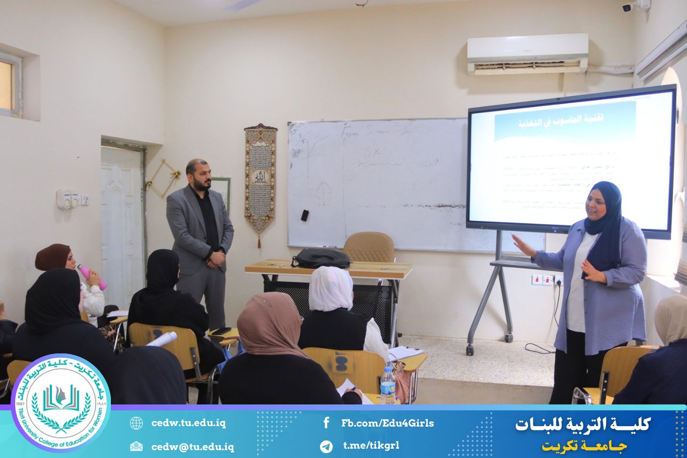أقامت كلية التربية للبنات – جامعة تكريت / قسم الاقتصاد المنزلي، بالتعاون مع مركز التعليم المستمر، دورة تدريبية بعنوان (تقنيات الحاسوب في التغذية وتصميم الأزياء المنزلية)، وذلك ليومي الثلاثاء والاربعاء الموافق 7-8 / 4 / 2026، على قاعة قسم الاقتصاد المنزلي.