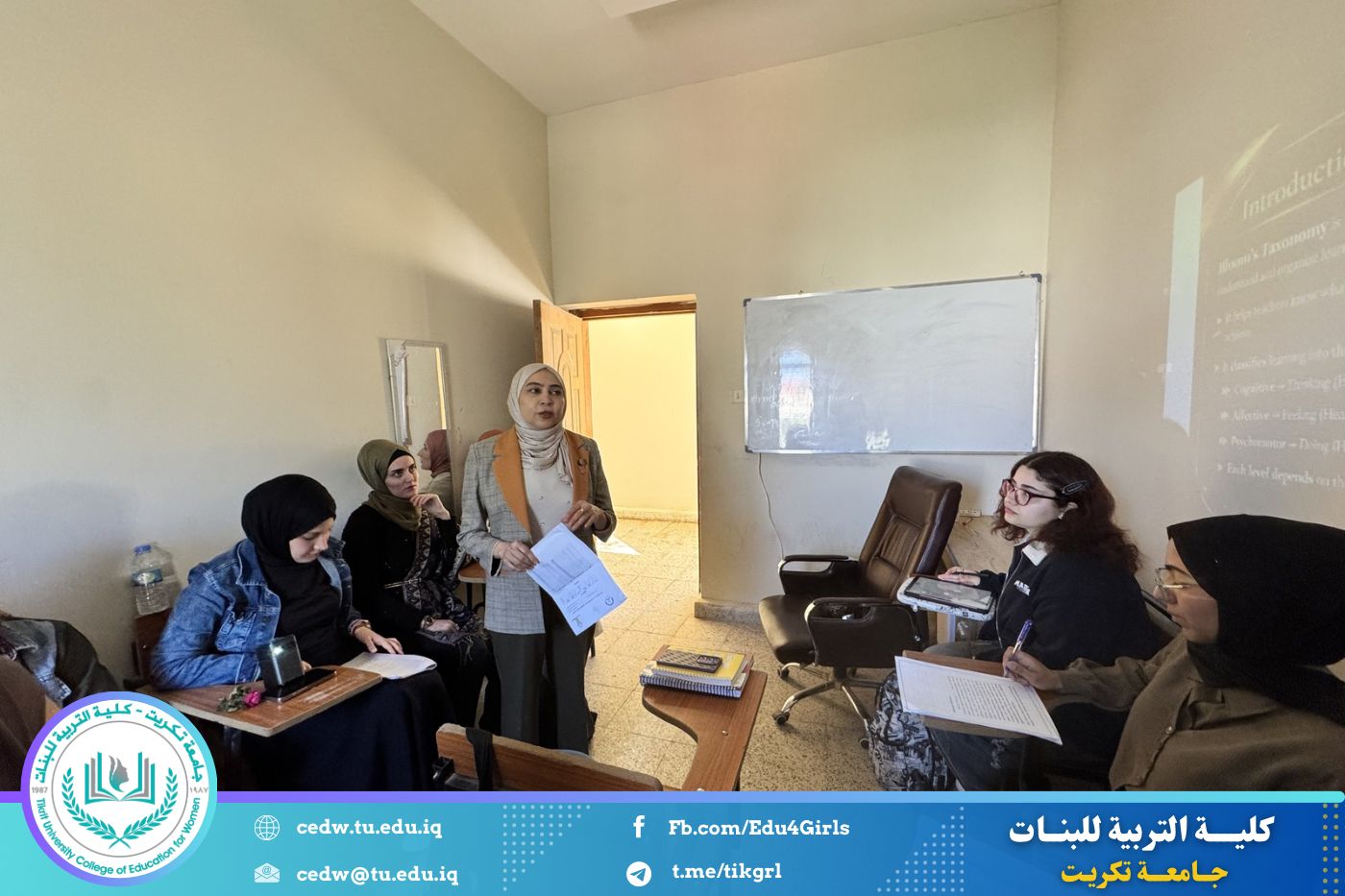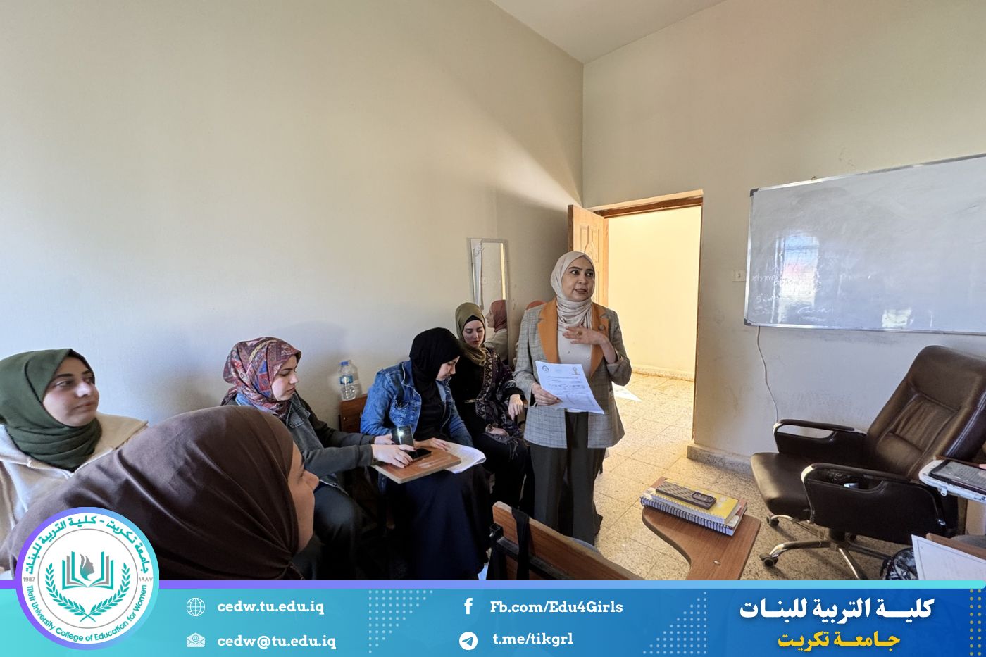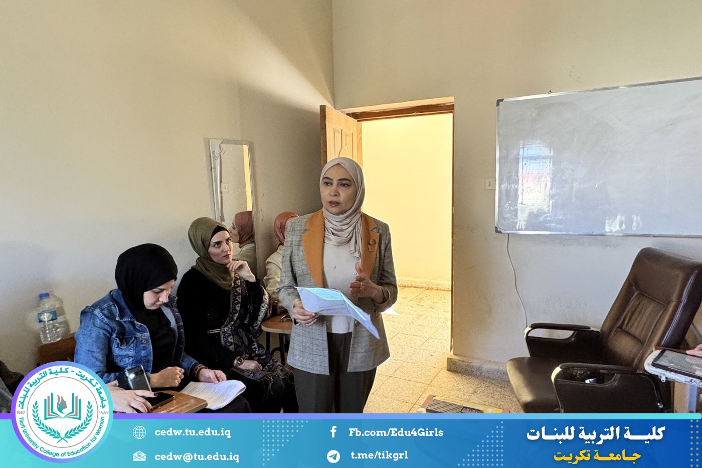 أقامت كلية التربية للبنات – جامعة تكريت / قسم اللغة الإنكليزية، بالتعاون مع مركز التعليم المستمر دورة تدريبية بعنوان (Curriculum Development for Effective English Language Learning)، في يومي الاثنين والثلاثاء الموافق 6-7/ 4/ 2026 ،وذلك على قاعة الماجستير في قسم اللغة الإنگليزية