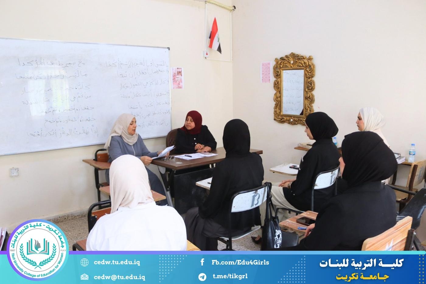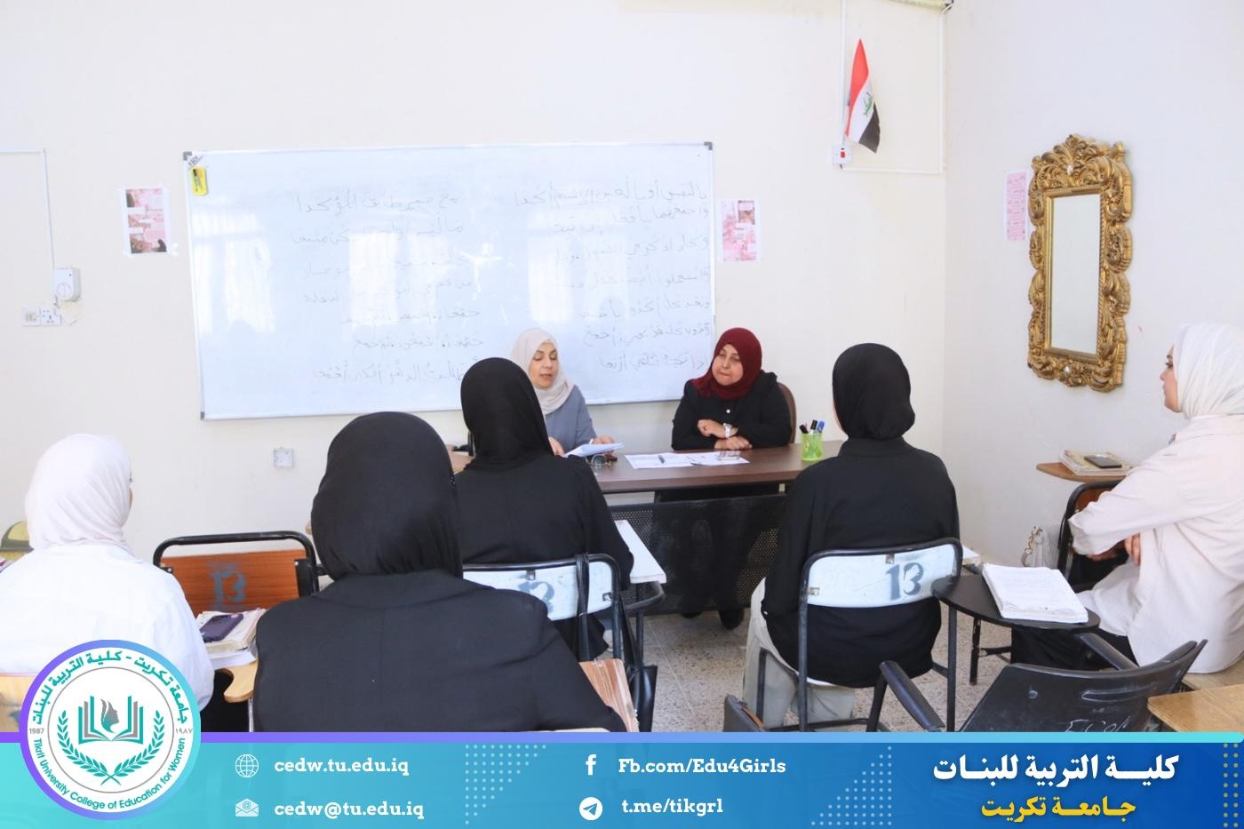 أقامت كلية التربية للبنات – قسم اللغة العربية، وبالتعاون مع مركز التعليم المستمر، ندوة علمية بعنوان (التمييز بين الدلالة الصرفية والدلالة السياقية)، وذلك يوم الأربعاء الموافق 15 / 4 / 2026، على قاعة المرحلة الأولى.