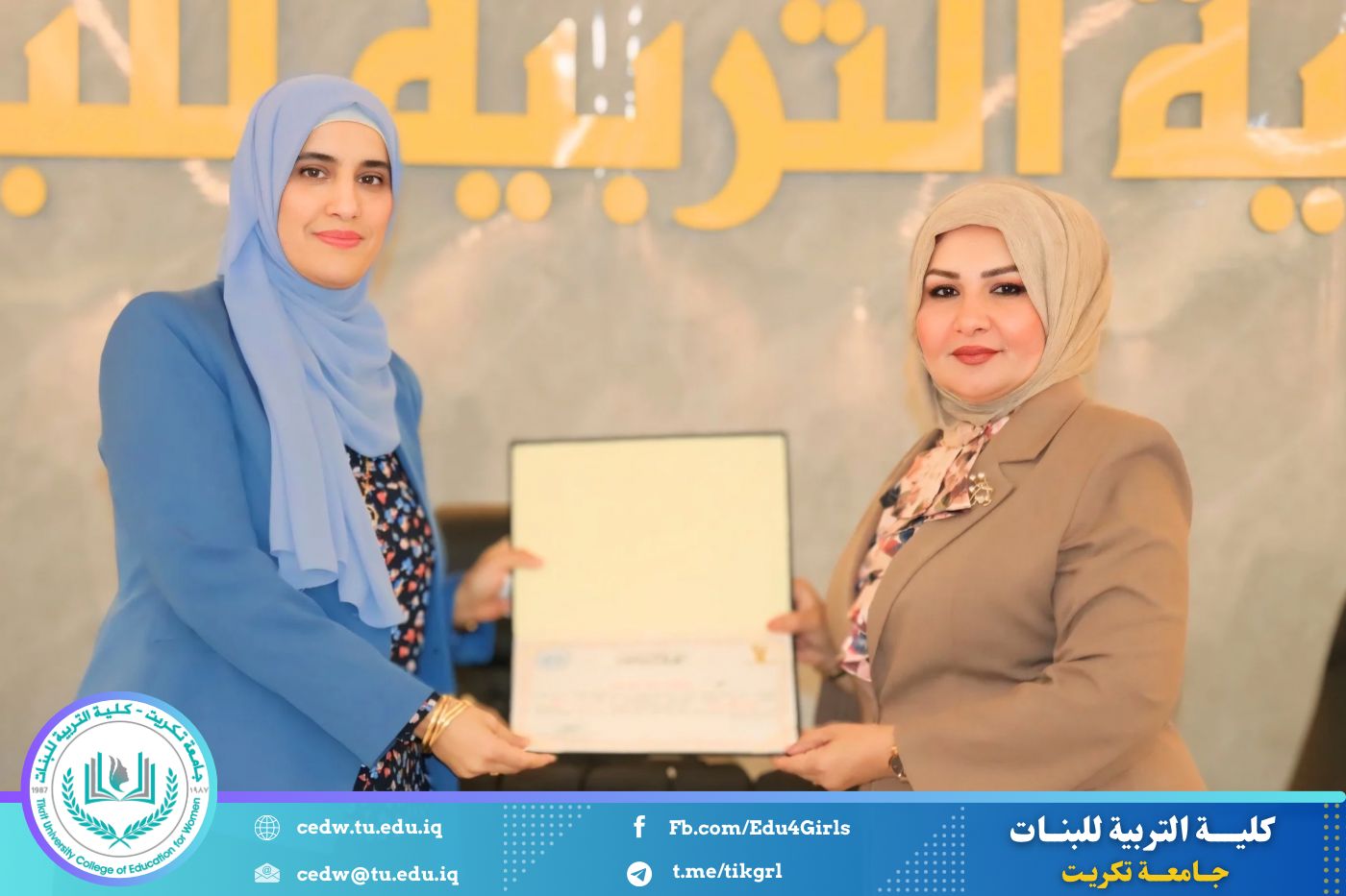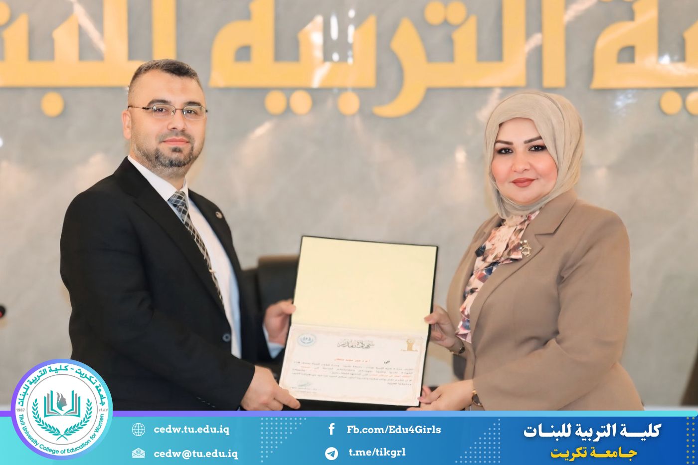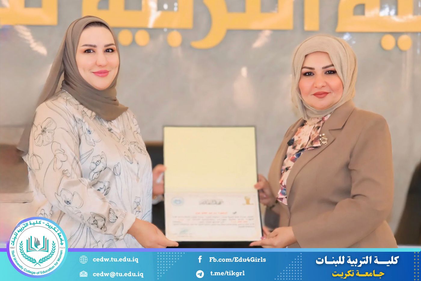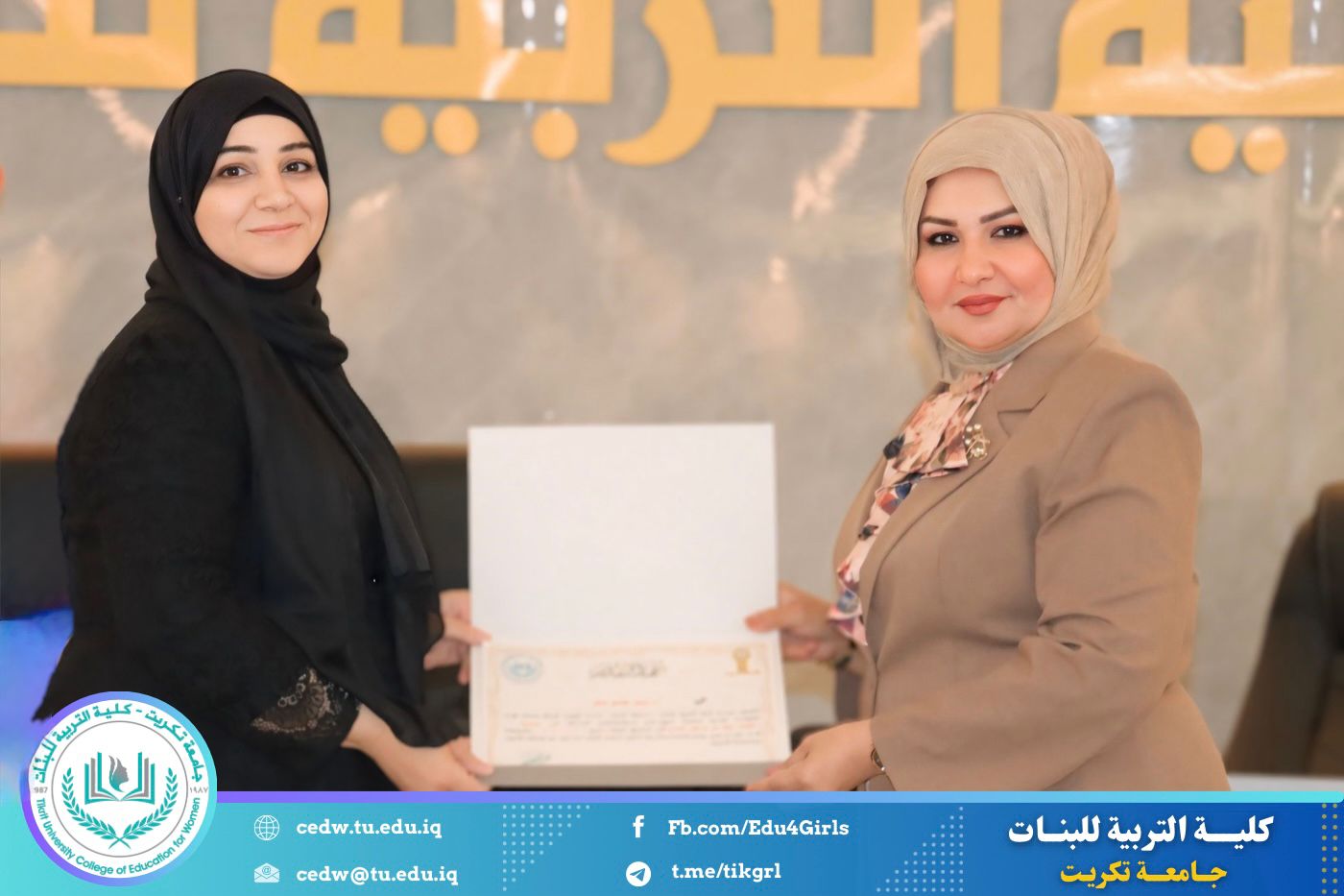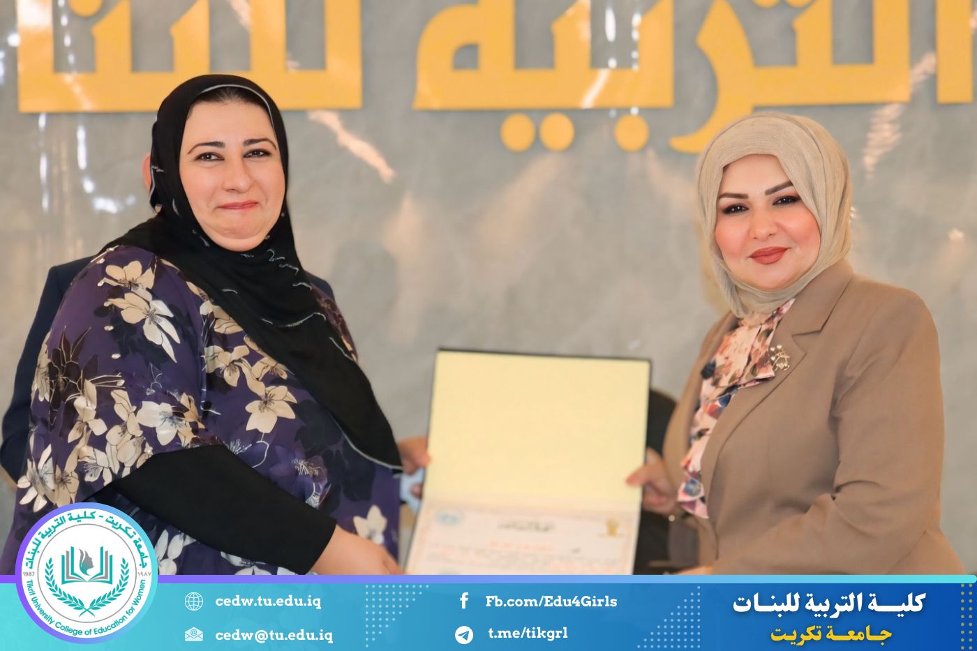 وفي ختام الندوة، قدّم المنظمون شكرهم وتقديرهم إلى عمادة الكلية على دعمها المتواصل للأنشطة التوعوية التي تسهم في ترسيخ ثقافة صحية رصينة لدى الطالبات وتعزيز الدور التربوي والإنساني للكلية في خدمة المجتمع. كما قامت عمادة كلية التربية للبنات ممثلةً بالسيدة عميد الكلية بتكريم السادة المحاضرين تثمينًا لجهودهم القيّمة ومشاركتهم الفاعلة في إنجاح الندوة.