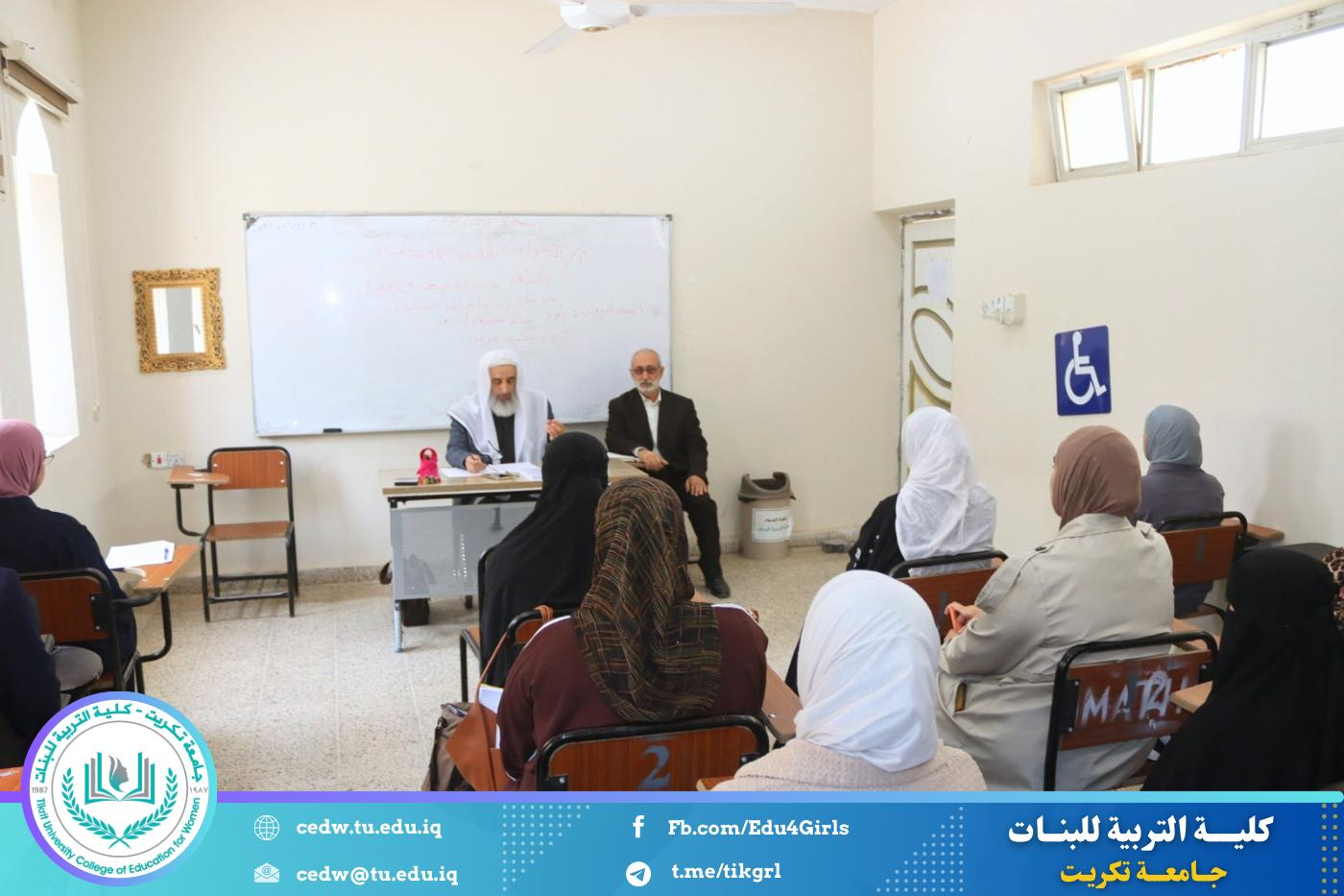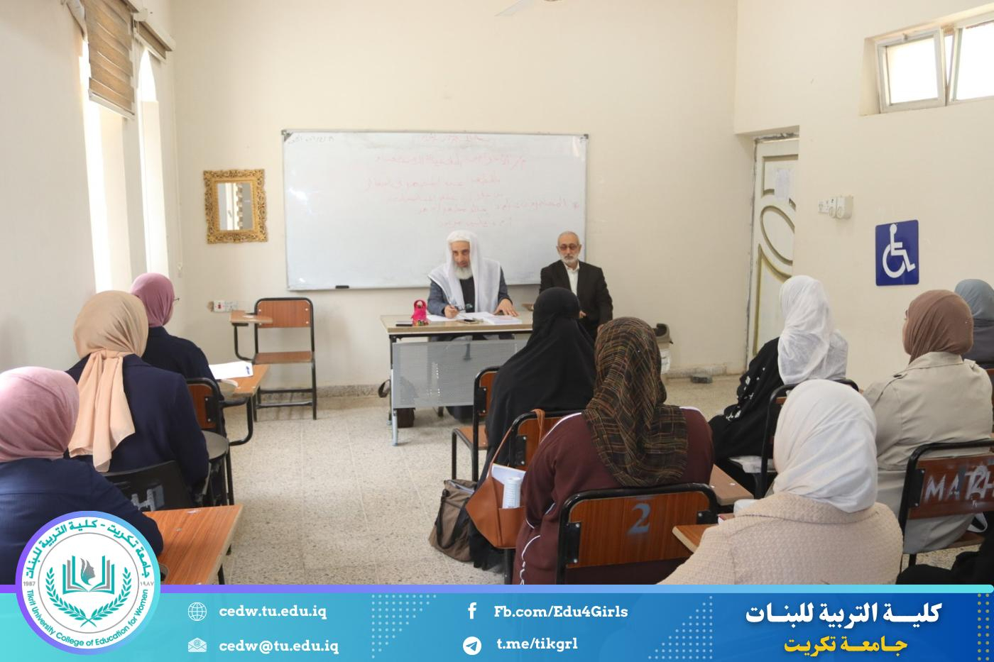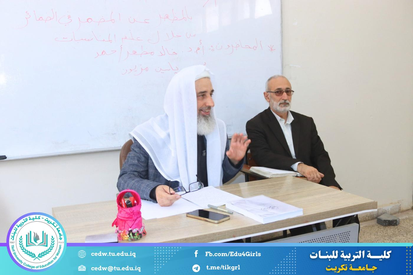 أقامت كلية التربية للبنات – قسم اللغة العربية، وبالتعاون مع مركز التعليم المستمر، دورة علمية بعنوان (الأغراض البلاغية للاستغناء بالمظهر عن المضمر في الضمائر من خلال علم المناسبات)، وذلك يومي الأحد والاثنين الموافقين 19–20 / 4 / 2026، على قاعة المرحلة الثالثة.