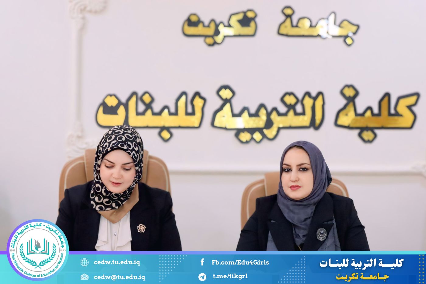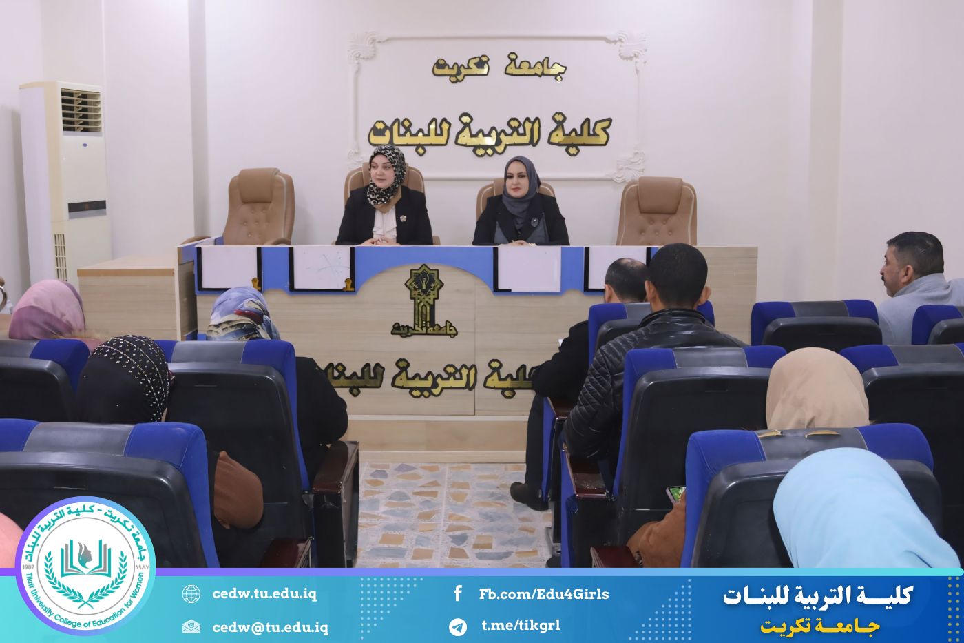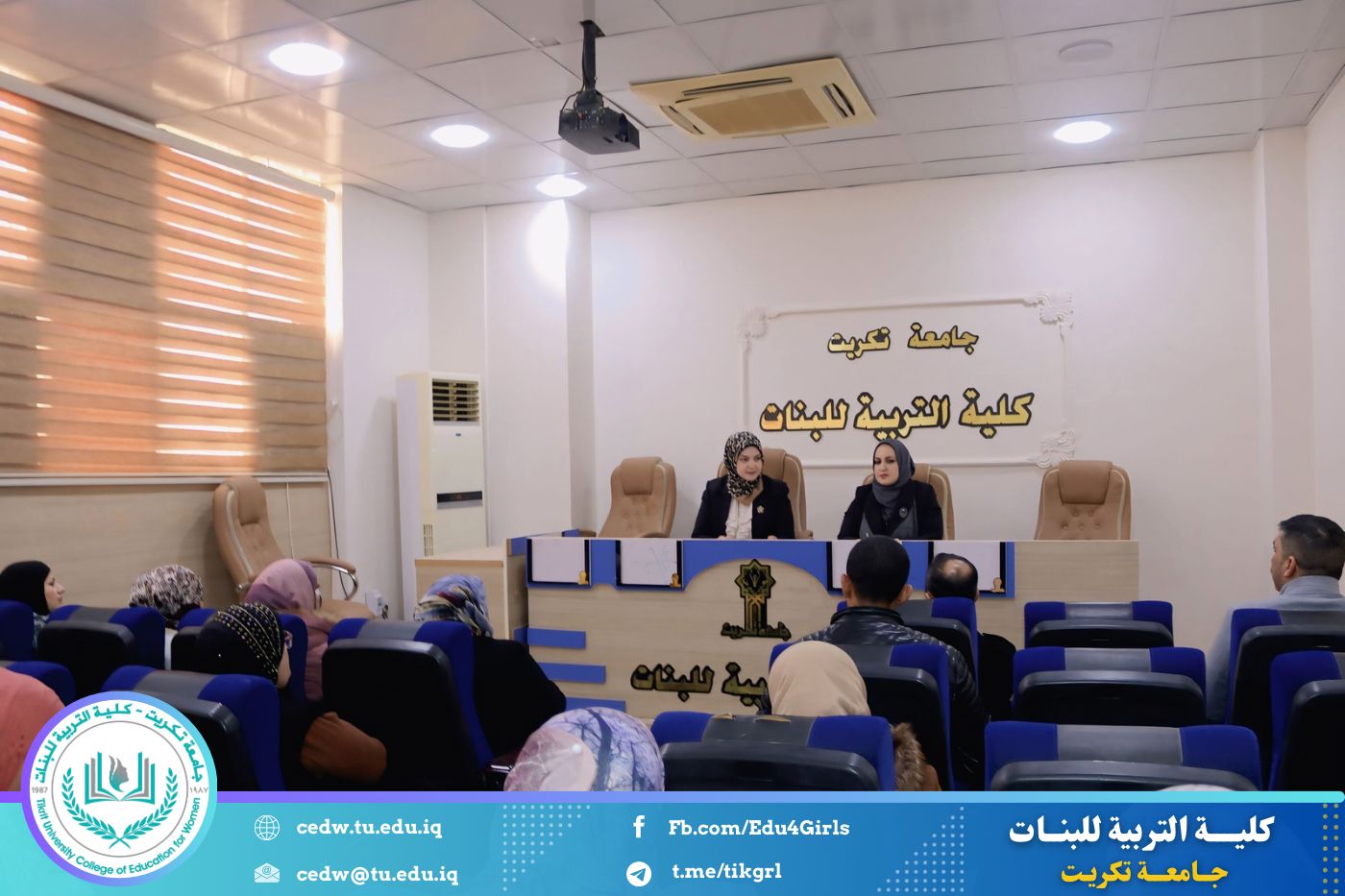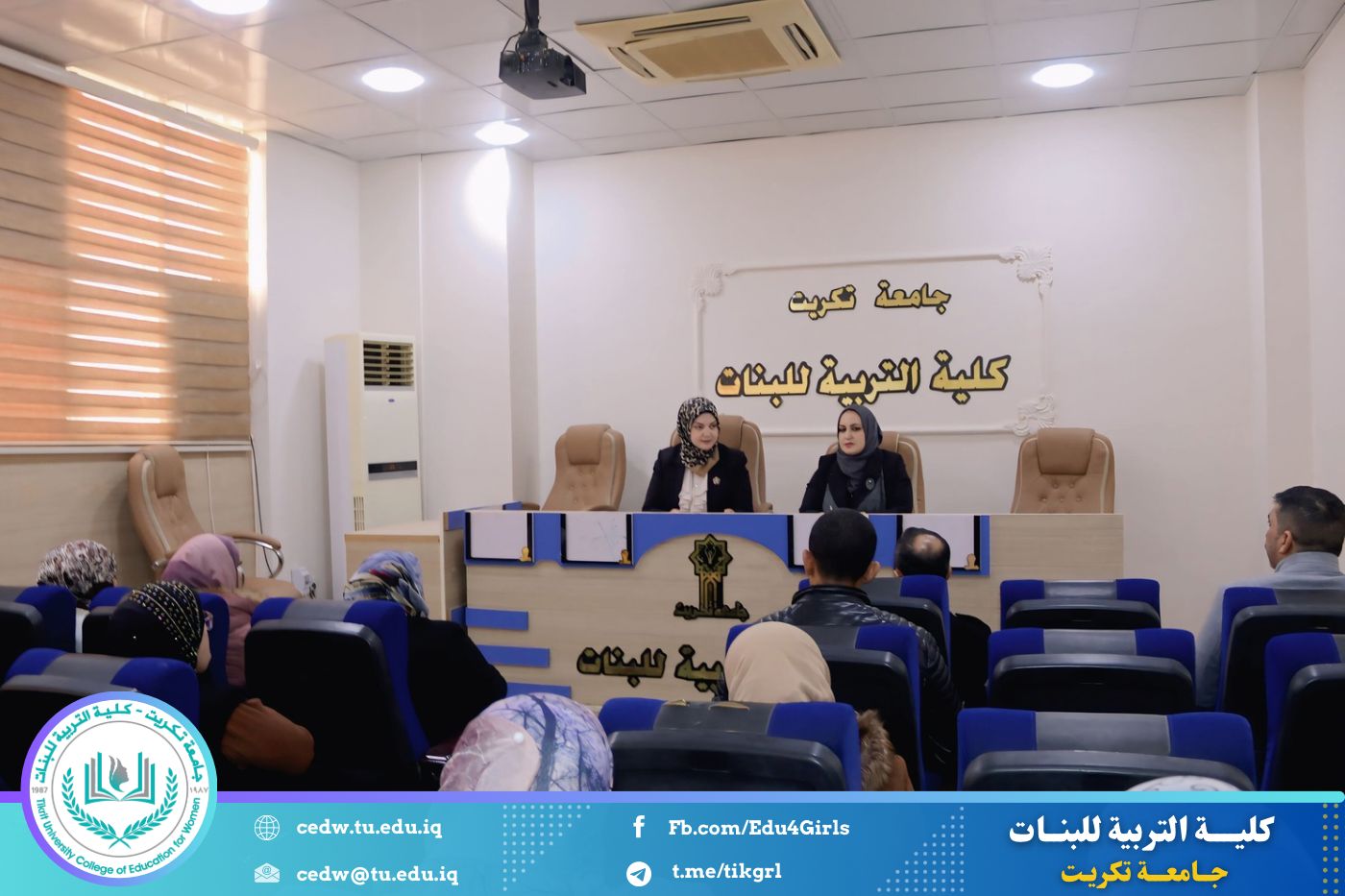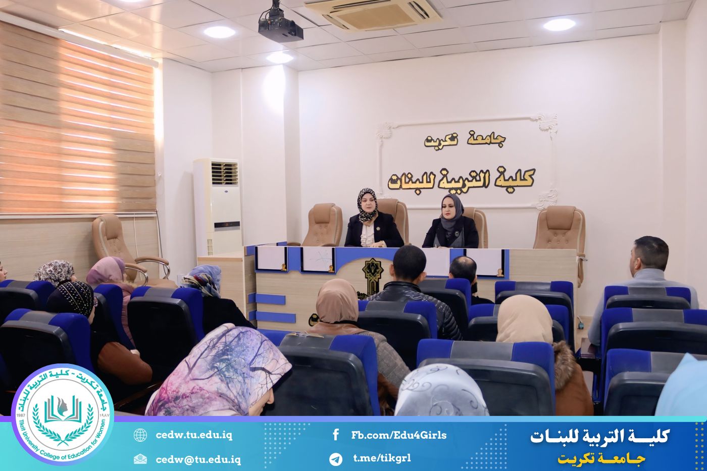 ضمن فعاليات الأسبوع الريادي، نظّمت كلية التربية للبنات – جامعة تكريت، يوم الأربعاء الموافق ١١ شباط ٢٠٢٦، ندوةً علمية بعنوان: «المشاريع الريادية الخضراء ودورها في حماية البيئة»، وذلك على قاعة السمنار - العمادة، بحضور عدد من التدريسيات والباحثات والطالبات.