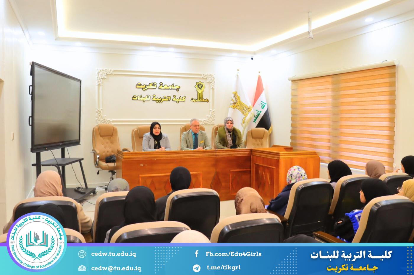 أقامت وحدة الإرشاد النفسي والتوجيه التربوي في كلية التربية للبنات بمناسبة الاسبوع الريادي وبالتعاون مع قسم علوم الحياة، ندوة إرشادية بعنوان (حين يفقد الأمل صوته: الانتحار بين الواقع الاجتماعي والتدخل القانوني)، وذلك يوم الأربعاء الموافق 11 / 2 / 2026، على قاعة السمنار للأقسام العلمية.
