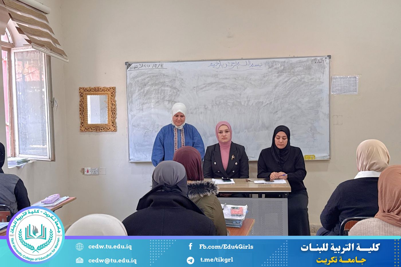 نظّم قسم علوم القرآن والتربية الإسلامية في كلية التربية للبنات بجامعة تكريت، وبالتعاون مع مركز التعليم المستمر، دورة علمية بعنوان: "أضرار مخالفة الفطرة على الفرد والمجتمع، وسبل الوقاية منها ومعالجتها في القرآن الكريم والسنة النبوية"، وذلك على مدى يومي الاثنين والثلاثاء الموافق ١–٢ / ١٢ / ٢٠٢٥، على قاعة الدراسات الأولية في القسم.
