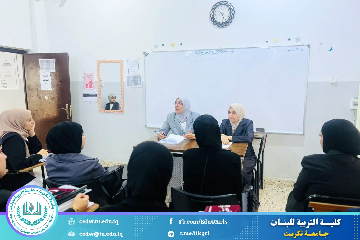 نظّم قسم العلوم التربوية والنفسية في كلية التربية للبنات / جامعة تكريت، بالتعاون مع وحدة التأهيل والتوظيف والمتابعة، دورةً علميةً إرشادية بعنوان: «المهارات الإرشادية ودورها في حل المشكلات المعاصرة»، وذلك على مدى يومين (الاثنين والثلاثاء ٢٠–٢١ / ٤ / ٢٠٢٦)، على قاعة السمنار في الأقسام العلمية، وبمشاركة خريجات القسم والمعيّنات بصفة مرشدات تربويات ضمن ملاك وزارة التربية.