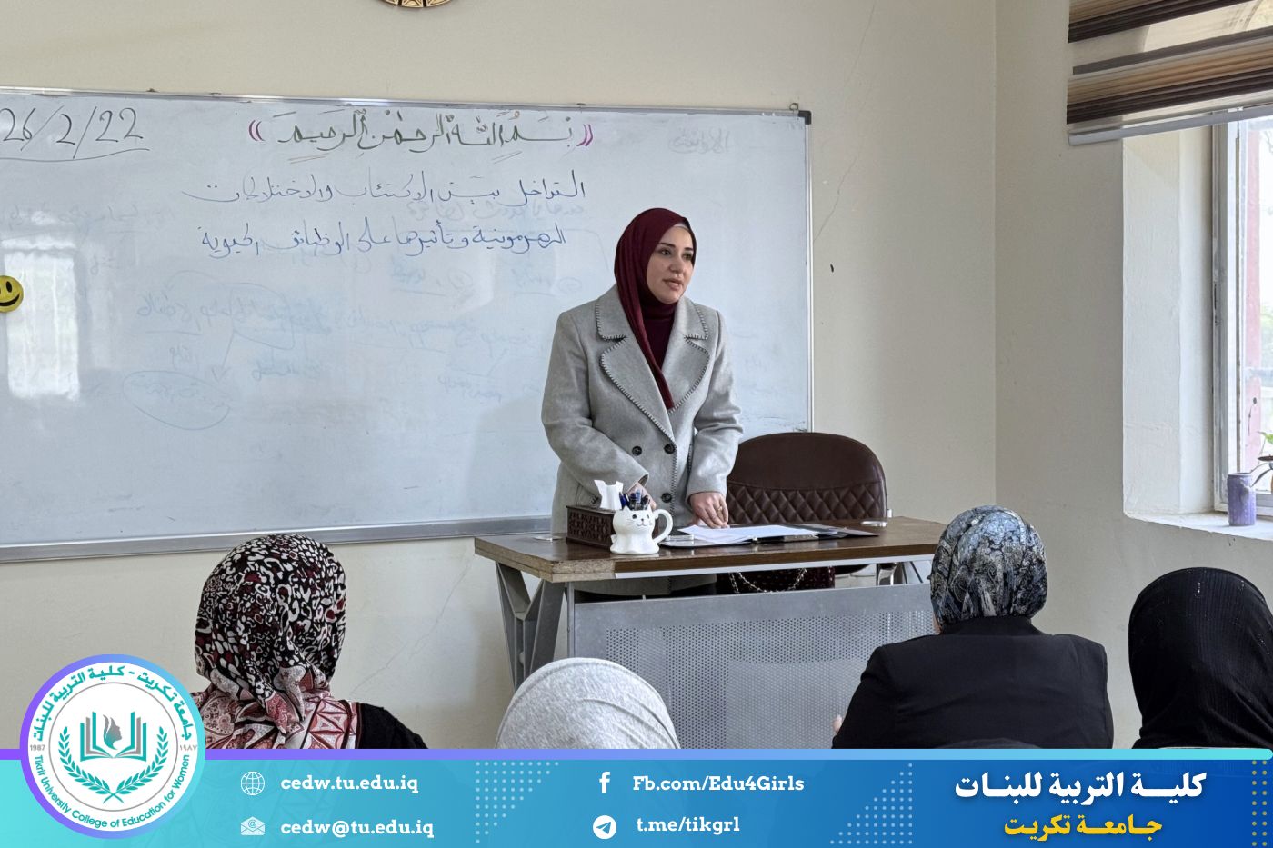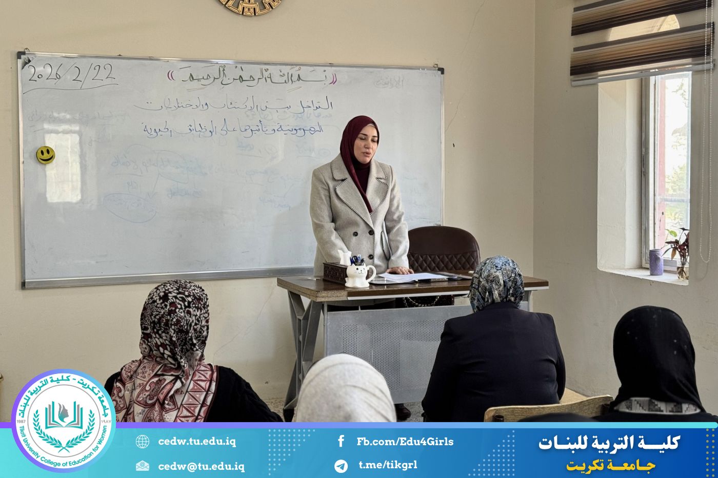 نظّم قسم الاقتصاد المنزلي في جامعة تكريت – كلية التربية للبنات، وبالتعاون مع مركز التعليم المستمر، دورة علمية بعنوان: «التداخل بين الاكتئاب والاختلالات الهرمونية وتأثيرها على الوظائف الحيوية»، وذلك على مدى يومي الأحد والاثنين الموافقين ٢٢–٢٣ / ٢ / ٢٠٢٦، وعلى رحاب قاعة قسم الاقتصاد المنزلي، بحضور عدد من التدريسيين والطالبات.