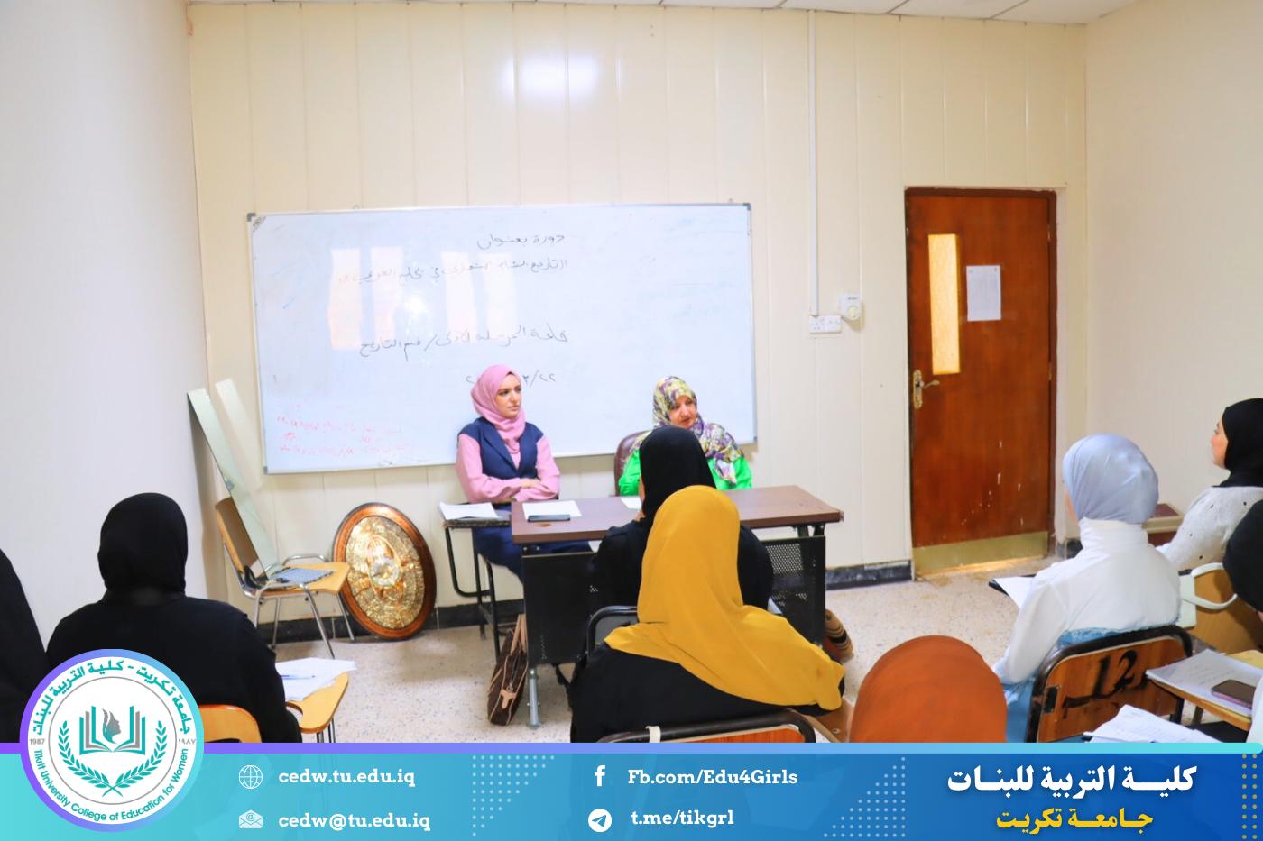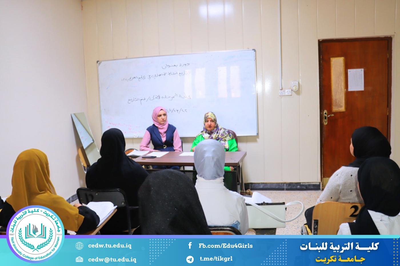 نظّم قسم التاريخ في كلية التربية للبنات – جامعة تكريت، وبالتعاون مع مركز التعليم المستمر – جامعة تكريت، دورةً علميةً بعنوان: «تاريخ النشاط الاستعماري في الخليج العربي»، وذلك على مدى يومي الأحد والاثنين الموافقين ٢٢–٢٣ / ٢ / ٢٠٢٦، وعلى رحاب قاعة المرحلة الأولى في قسم التاريخ.