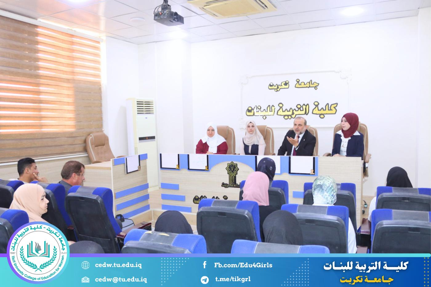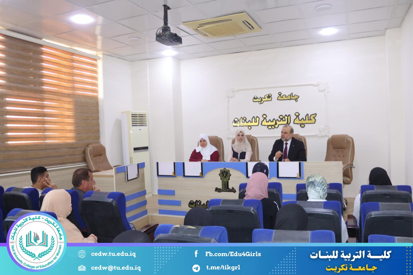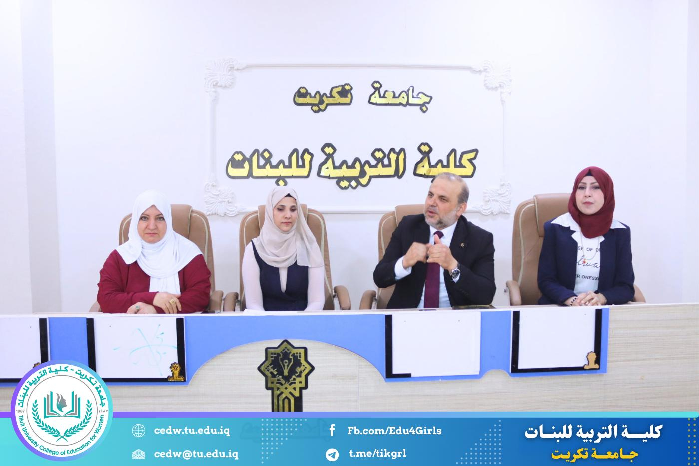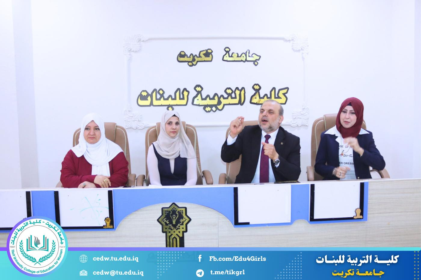 أقامت وحدة شؤون المرأة في كلية التربية للبنات، بالتعاون مع وحدة شؤون المرأة ذات الإعاقة، ندوة بعنوان (دور الأسرة في تنمية الأطفال ذوي الاحتياجات الخاصة في ضوء إمكانياتها)، وذلك يوم الخميس الموافق 23 / 4 / 2026، على قاعة السمنار في العمادة.