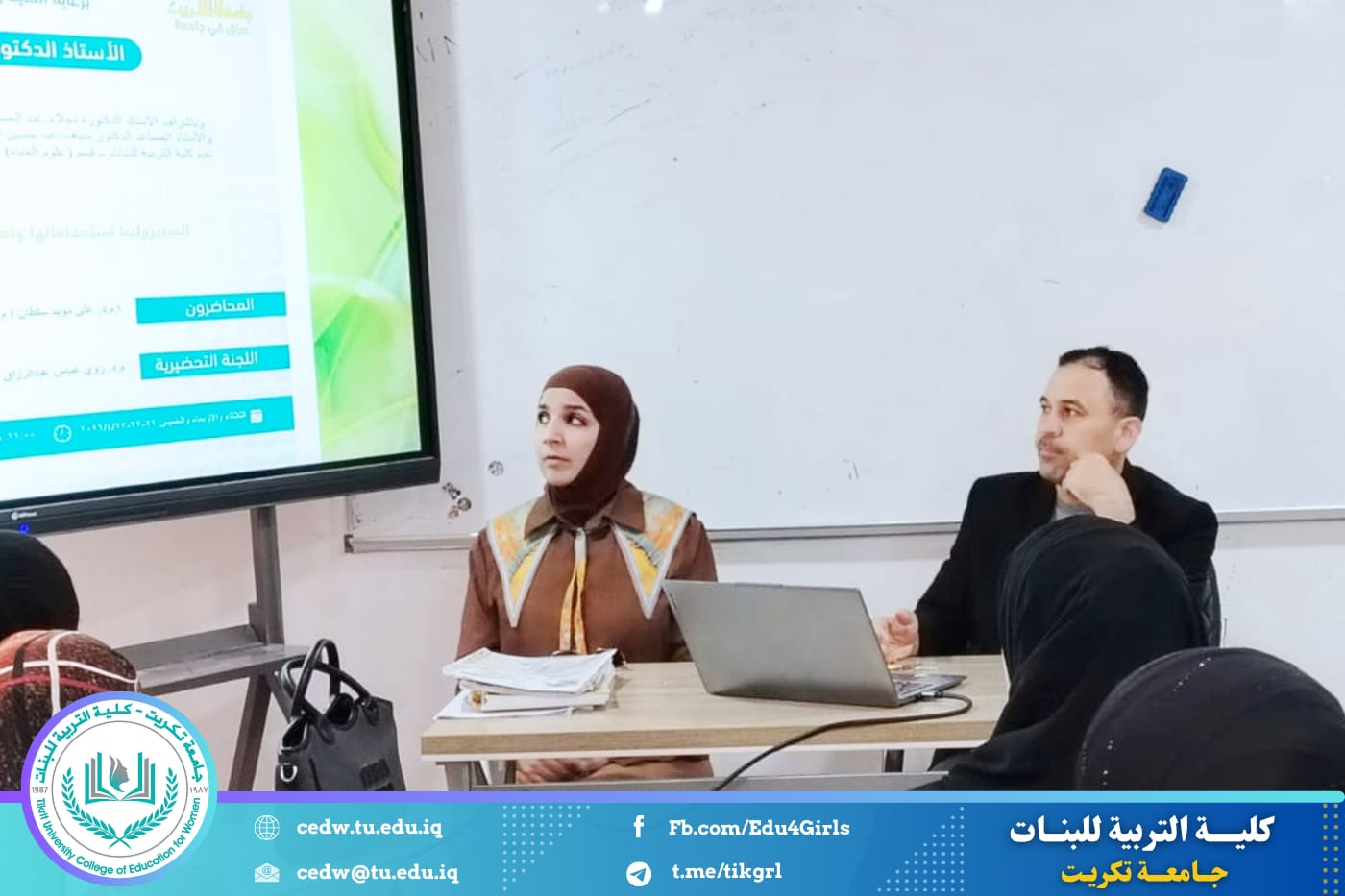 نظّم قسم علوم الحياة في كلية التربية للبنات – جامعة تكريت، وبالتعاون مع مركز التعليم المستمر في جامعة تكريت، دورةً علميةً بعنوان: “السبيرولينا… استخداماتها وأهميتها وأضرارها للكائن الحي”، وذلك على مدى ثلاثة أيام (الثلاثاء والأربعاء والخميس) الموافق ٢١–٢٢–٢٣ / ٤ / ٢٠٢٦، وعلى رحاب قاعة (٣) في الأقسام العلمية، بمشاركة عدد من التدريسيين والطلبة.