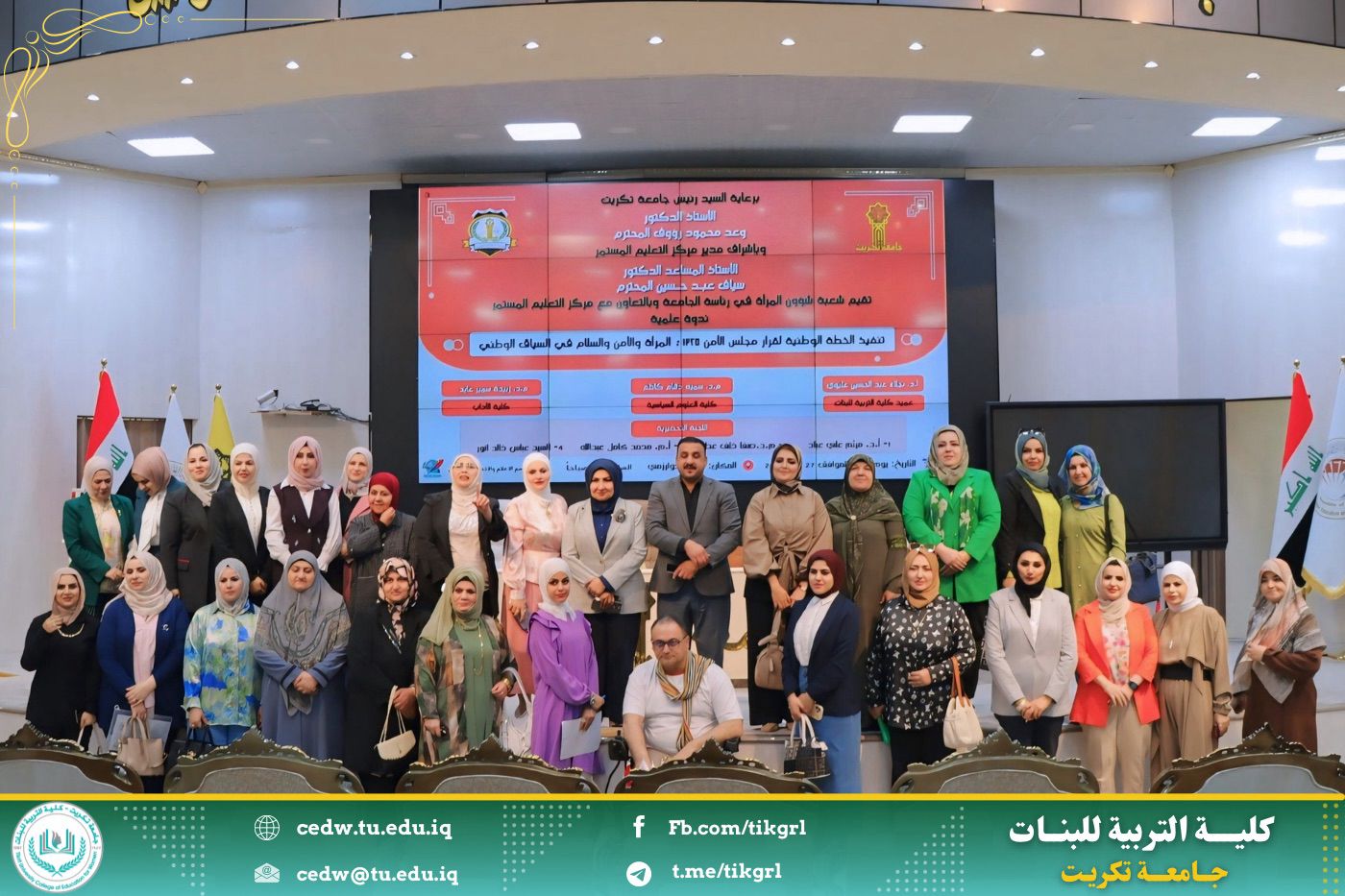 واشارت السيدة عميد كلية التربية للبنات إلى أن تطبيق القرار الأممي ١٣٢٥ في السياق العراقي يتطلب مزيدًا من الجهود التنسيقية بين المؤسسات الحكومية والأكاديمية ومنظمات المجتمع المدني.