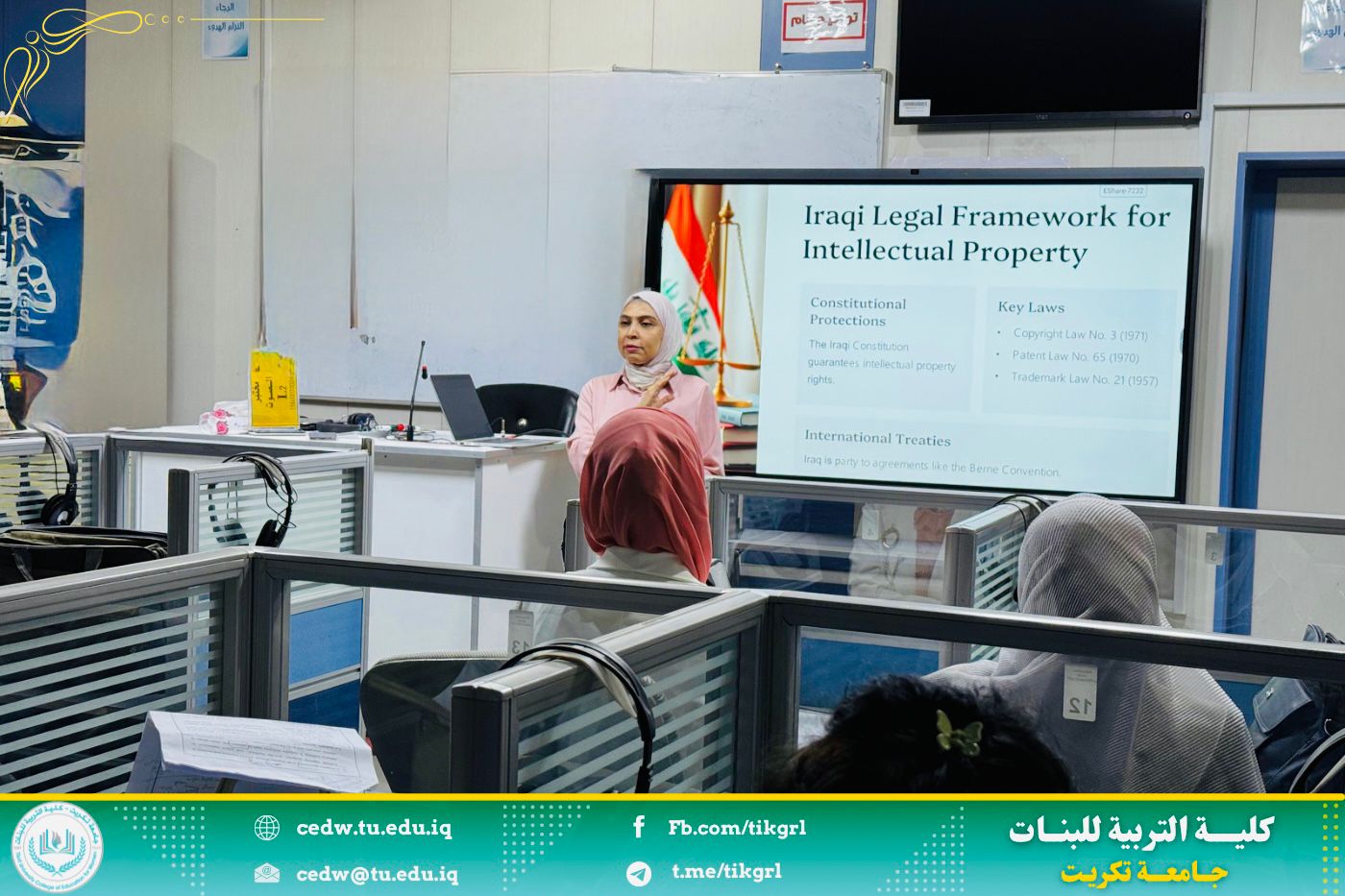 أقامت كلية التربية للبنات شعبة الدراسات العليا بالتعاون مع قسم اللغة الإنكليزية ندوة علمية بعنوان:(أخلاقيات الملكية الفكرية) في اليوم الاثنين الموافق 2025/4/28 على قاعة مختبر الصوت