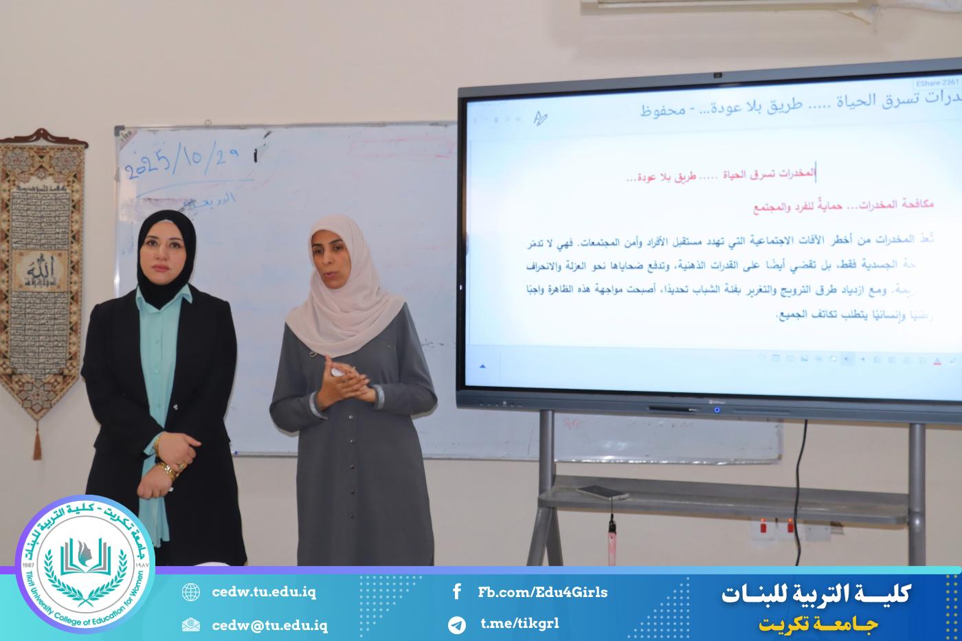نظّمت وحدة الإرشاد النفسي والتوجيه التربوي بالتعاون مع قسم الاقتصاد المنزلي في كلية التربية للبنات – جامعة تكريت، يوم الأربعاء الموافق ٢٩ تشرين الأول ٢٠٢٥، ندوةً إرشادية بعنوان: "المخدرات تسرق الحياة... طريق بلا عودة"، وذلك على رحاب قاعة قسم الاقتصاد المنزلي.