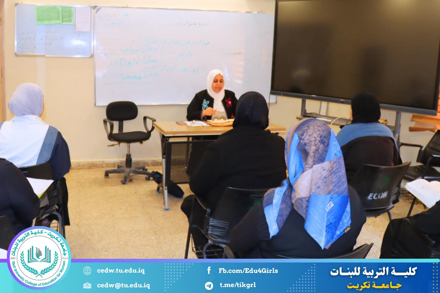 أقامت كلية التربية للبنات – جامعة تكريت / قسم الجغرافية، بالتعاون مع مركز التعليم المستمر، دورة تدريبية بعنوان (مهارات البحث العلمي في المكتبات الرقمية)، وذلك يومي الأحد والإثنين الموافق 29–30 / 3 / 2026، على قاعة المرحلة الرابعة في قسم الجغرافية