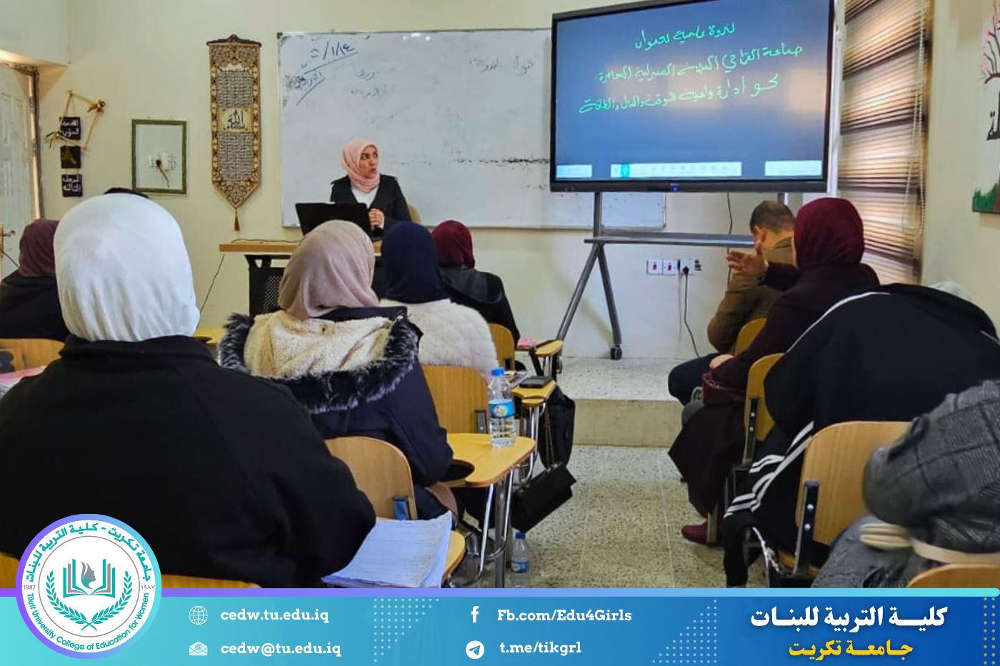 نظّم قسم الاقتصاد المنزلي في كلية التربية للبنات بجامعة تكريت، وبالتعاون مع وحدة التأهيل والتوظيف والمتابعة، ندوة علمية بعنوان «صناعة القرار في البيئة المنزلية المعاصرة: نحو إدارة واعية للوقت والمال والطاقة»، وذلك صباح يوم الأربعاء الموافق ١٤ / ١ / ٢٠٢٦، وعلى رحاب قاعة قسم الاقتصاد المنزلي.