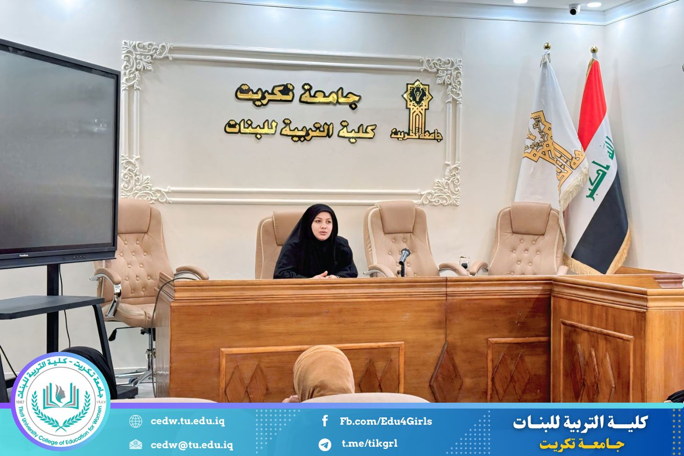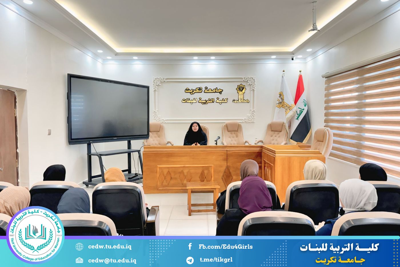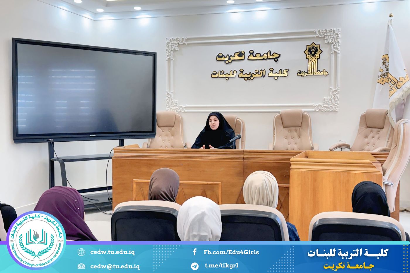 نظّم قسم العلوم التربوية والنفسية في كلية التربية للبنات / جامعة تكريت، وبالتعاون مع مركز التعليم المستمر، دورة علمية بعنوان: "تقنيات القراءة والتحليل لتطوير مهارات الطالبات في فهم وتطبيق حقوق الإنسان"، وذلك على مدى يومين الأحد والاثنين الموافق ٢٩–٣٠ / ٣ / ٢٠٢٦، على قاعة السمنار في الأقسام العلمية.