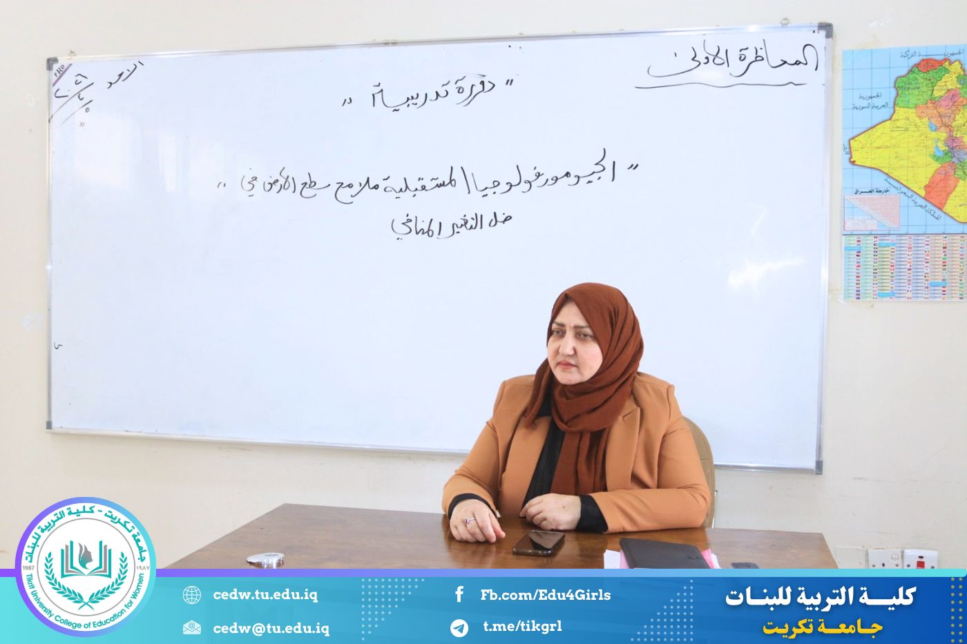 أقامت كلية التربية للبنات – جامعة تكريت / قسم الجغرافية، بالتعاون مع مركز التعليم المستمر، دورة تدريبية بعنوان (الجيومورفولوجيا المستقبلية ملامح سطح الأرض في ظل التغير المناخي)، وذلك ليومي الأحد والاثنين الموافق 5–6/ 4 / 2026، على قاعة المرحلة الاولى