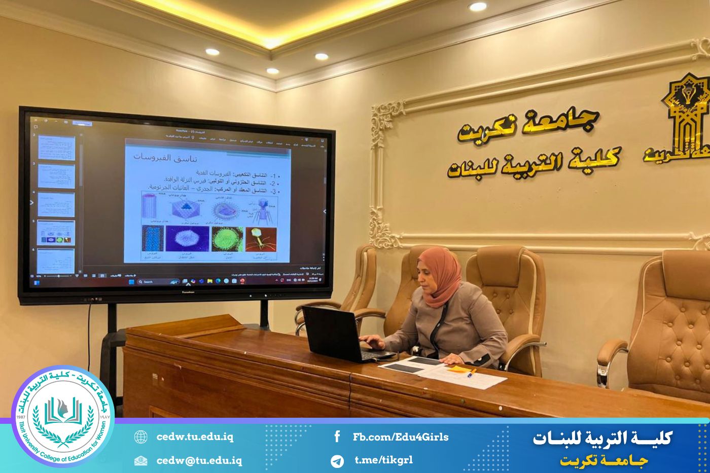 نظّم مركز التعليم المستمر بالتعاون مع قسم علوم الحياة في كلية التربية للبنات – جامعة تكريت، دورة علمية بعنوان: “الفيروسات التنفسية ومن بينها الأدينوسين فيروس والأعراض المرضية CNN”، وذلك يومي الأحد والاثنين الموافق 12-13 / 10 / 2025، في قاعة السمنار للأقسام العلمية.