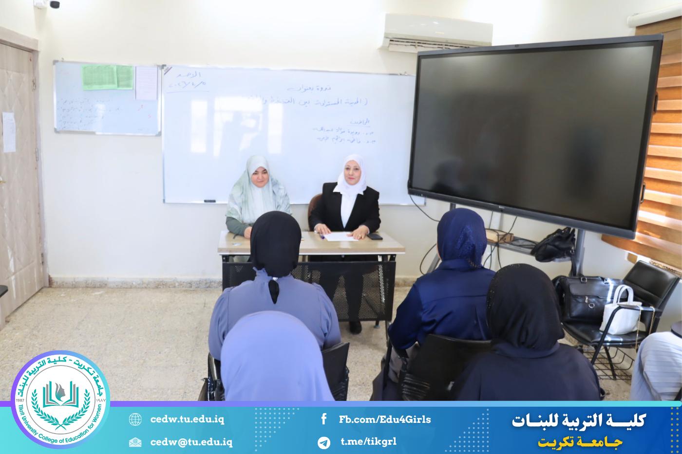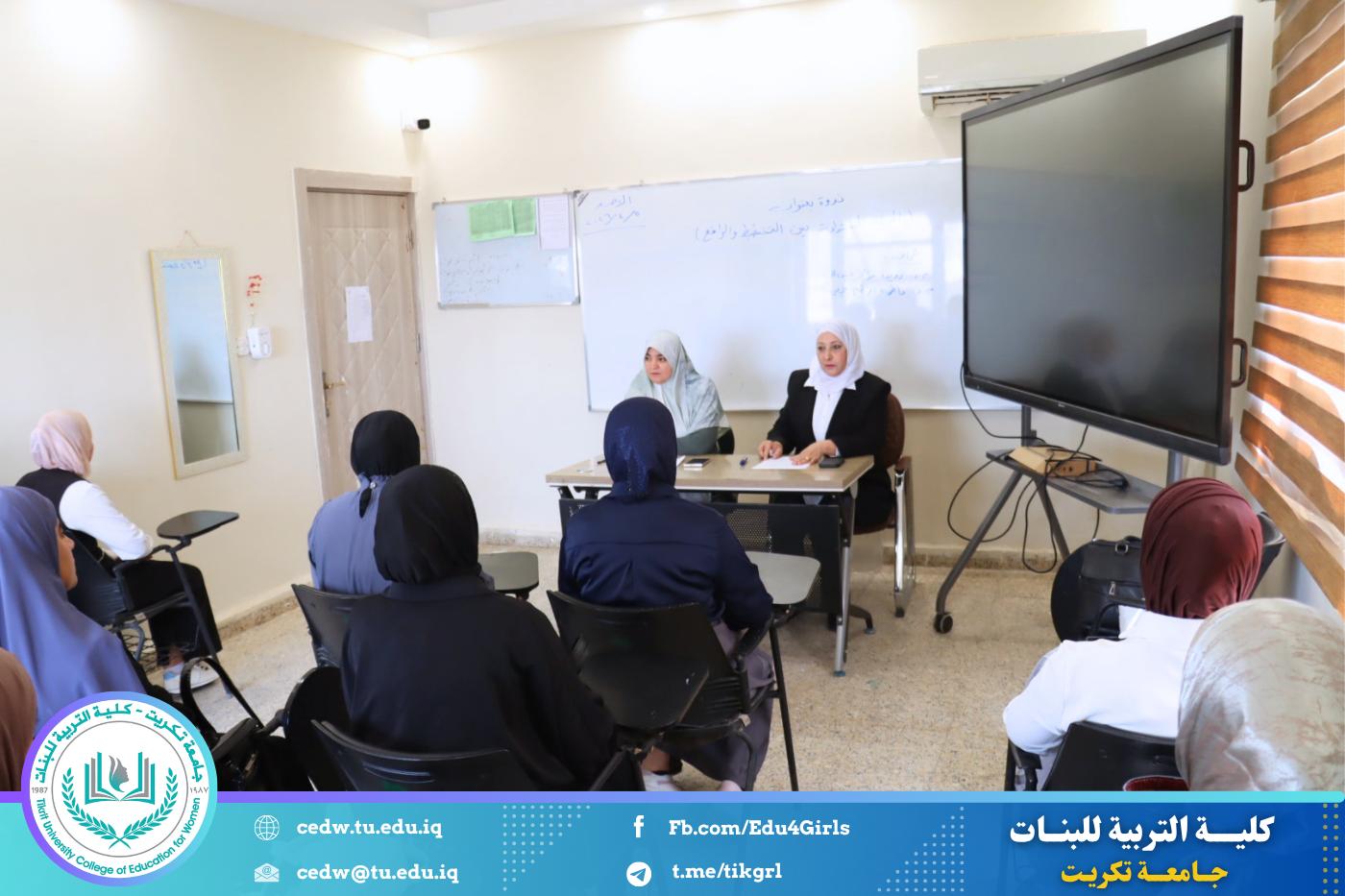 أقامت كلية التربية للبنات – جامعة تكريت / قسم الجغرافية، بالتعاون مع مركز التعليم المستمر، ندوة علمية بعنوان (المدينة المستدامة بين التخطيط والواقع)، وذلك يوم الأحد الموافق 5 / 4 / 2026، على قاعة المرحلة الرابعة في قسم الجغرافية.
