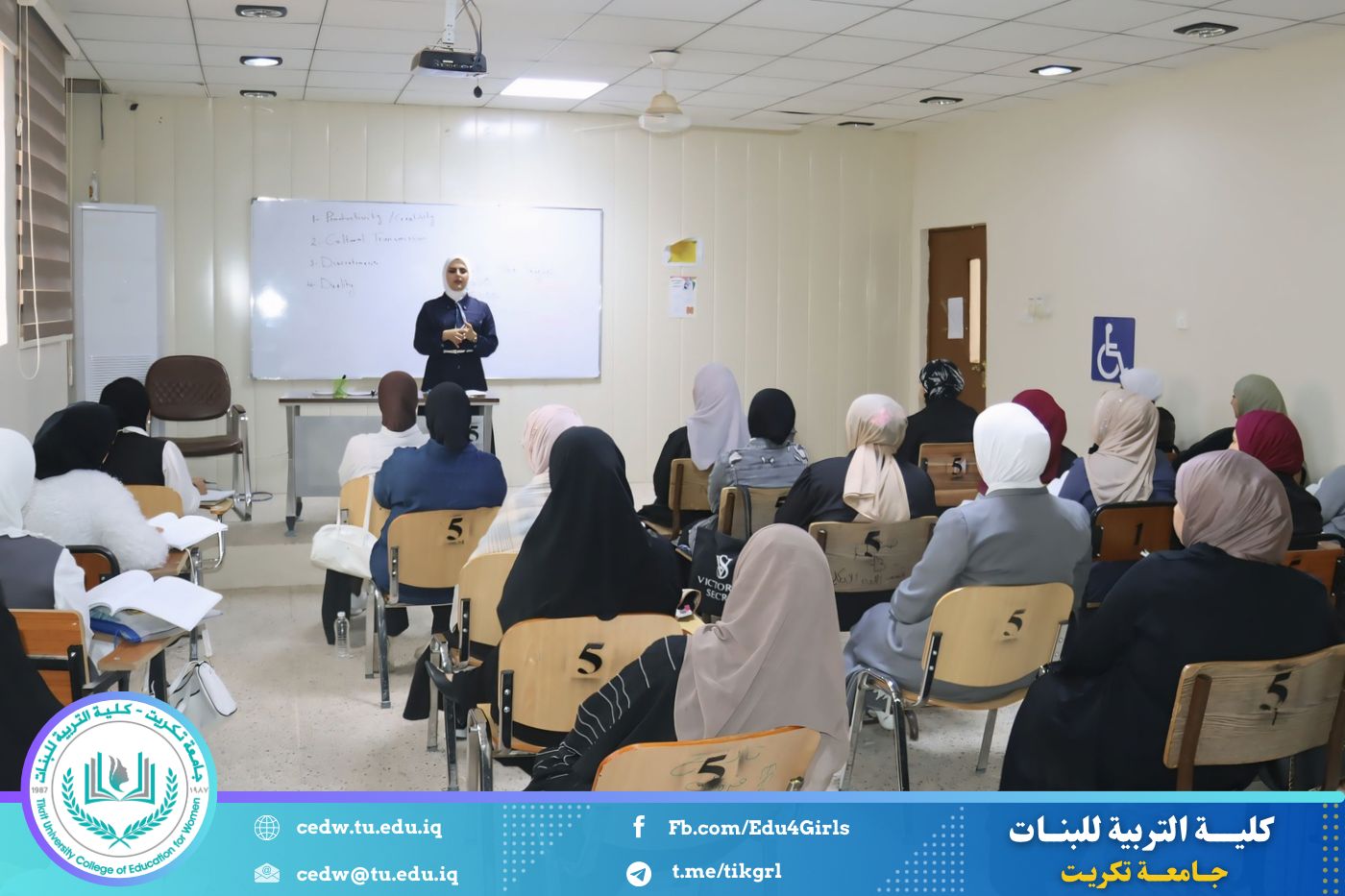 أقامت كلية التربية للبنات – جامعة تكريت / قسم اللغة الإنكليزية، بالتعاون مع مركز التعليم المستمر، دورة تدريبية بعنوان (Essential Skills and Qualities of Successful Language Teachers)، وذلك ليومي الأحد والاثنين الموافق 5–6 / 4 / 2026، على قاعة المرحلة الثالثة