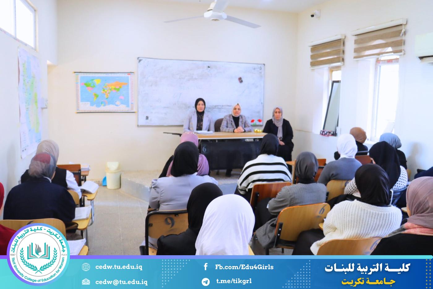 أقامت وحدة الإرشاد التربوي والنفسي، بالتعاون مع قسم التاريخ في كلية التربية للبنات – جامعة تكريت، ندوة إرشادية بعنوان: “رمضان شهر علم وعبادة”، وذلك يوم الاثنين الموافق 2 / 3 / 2026، على قاعة المرحلة الثانية / قسم التاريخ