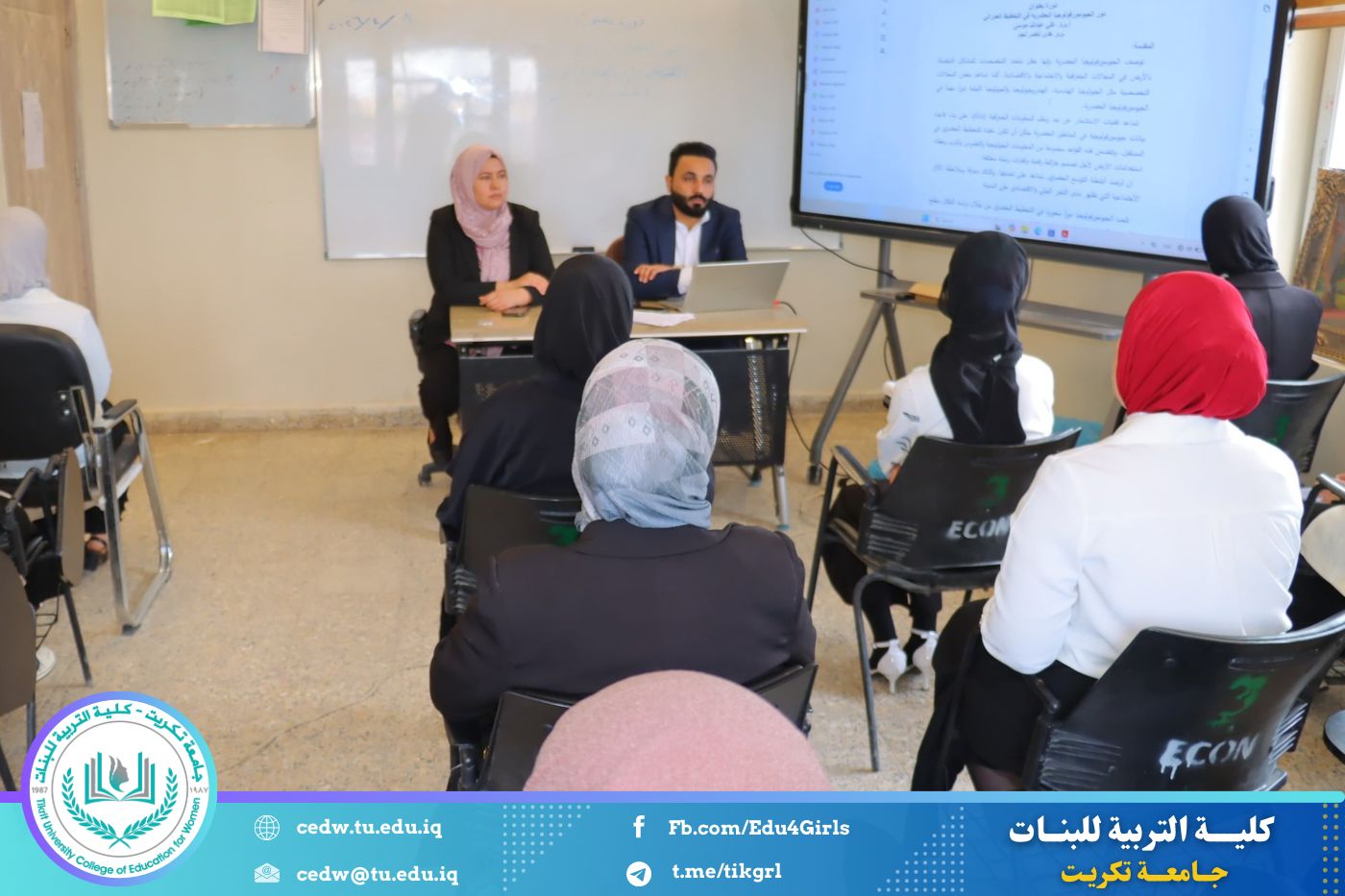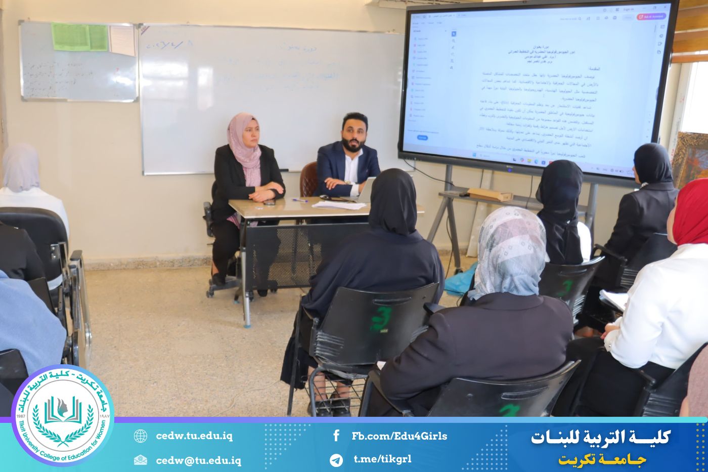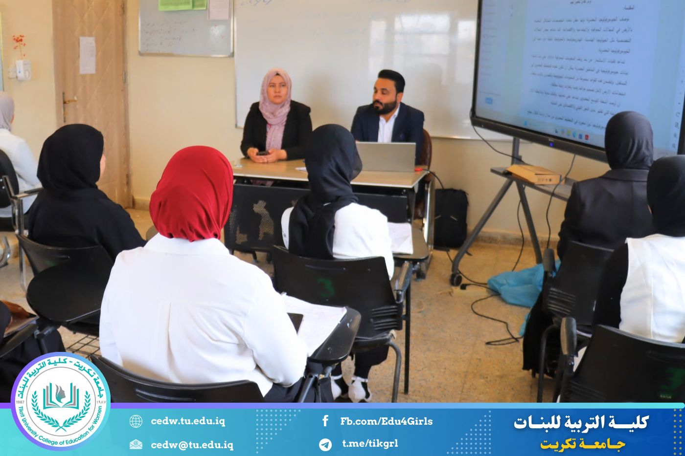 نظّم قسم الجغرافية في كلية التربية للبنات – جامعة تكريت، بالتعاون مع مركز التعليم المستمر، دورة تدريبية بعنوان “تغير استعمالات الأرض الزراعية وأثرها في التنمية الزراعية في محافظة صلاح الدين - قضاء تكريت أنموذجاً”، ليومي الثلاثاء والاربعاء الموافق 7-8/ 4/ 2026 وقد أُقيمت الدورة على قاعة المرحلة الرابعة.