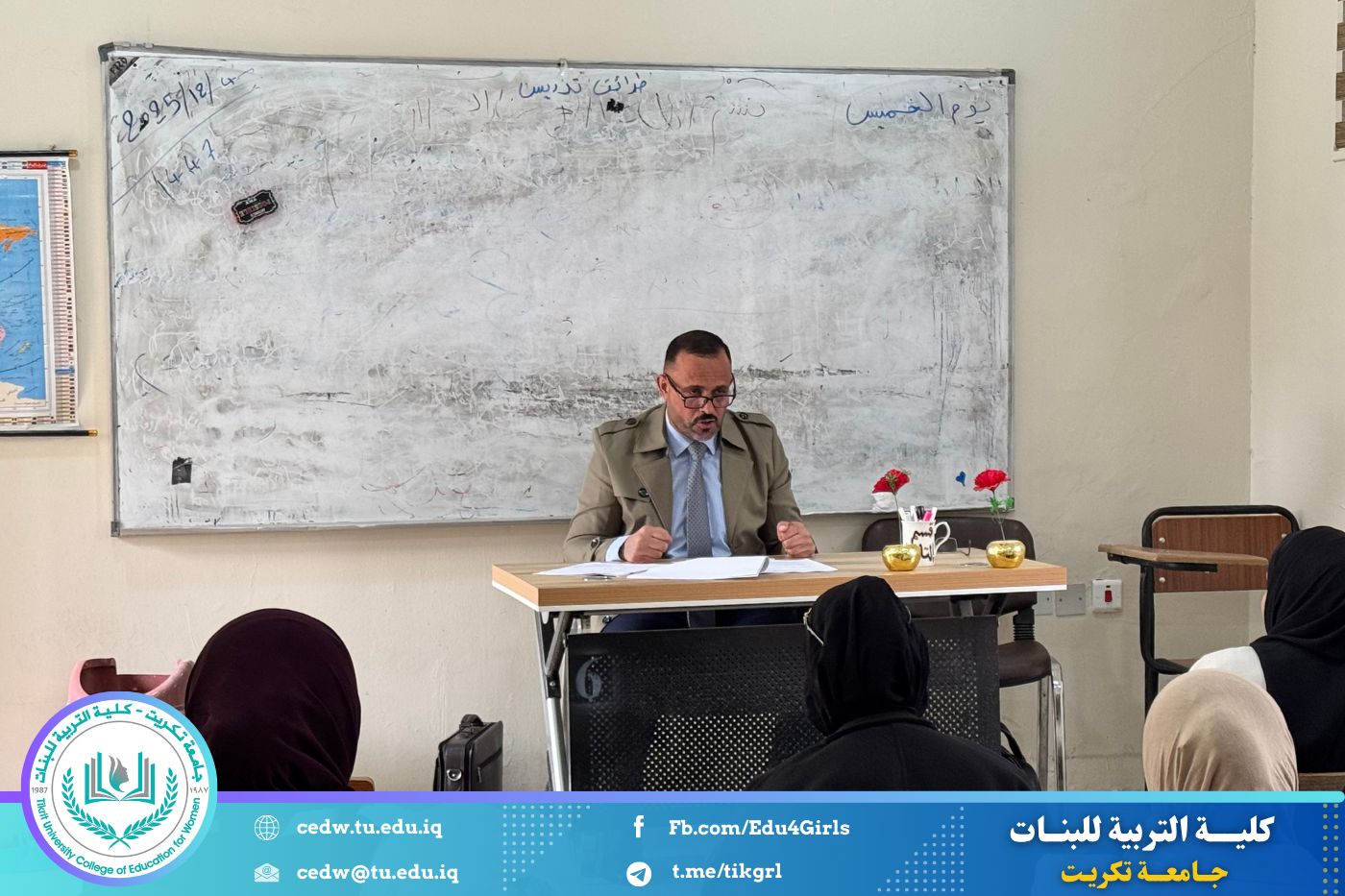 نظّم قسم التاريخ في كلية التربية للبنات بجامعة تكريت، بالتعاون مع مركز التعليم المستمر، دورة علمية تحت عنوان "منهجية كتابة بحث التخرج للمرحلة الرابعة"، وذلك على مدى يومين، الأحد والاثنين الموافق ٧–٨ / ١٢ / ٢٠٢٥، في قاعة المرحلة الثانية في قسم التاريخ.