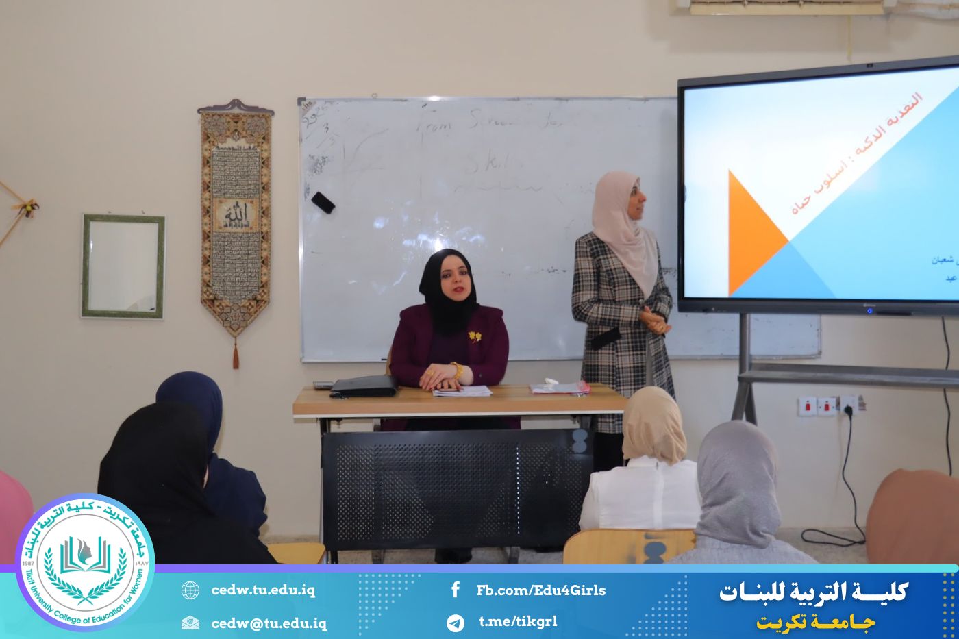 أقامت كلية التربية للبنات – جامعة تكريت / قسم الاقتصاد المنزلي، بالتعاون مع مركز التعليم المستمر، دورة تدريبية بعنوان (التغذية الذكية أسلوب حياة)، وذلك ليومي الأربعاء والخميس الموافق 8-9 / 4 / 2026، على قاعة المرحلة الثالثة في قسم الاقتصاد المنزلي.