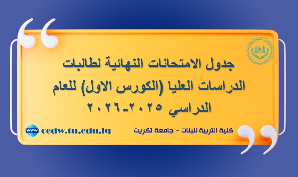 جدول الامتحانات النهائية لطالبات الدراسات العليا (الكورس الاول) للعام الدراسي ٢٠٢٥-٢٠٢٦
