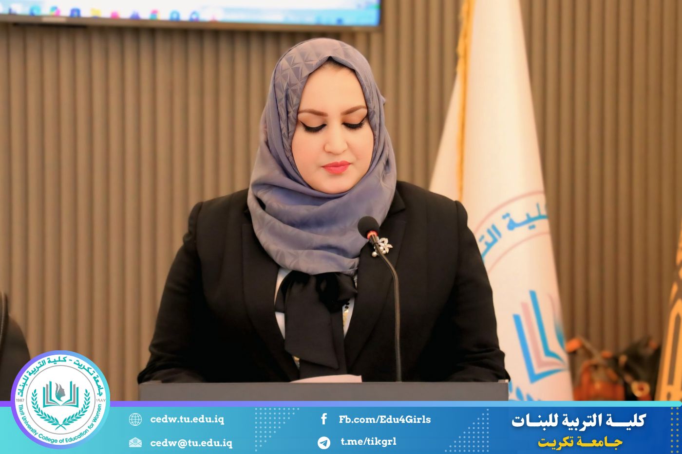وتلت ذلك كلمة السيدة معاون العميد للشؤون الإدارية الأستاذ المساعد الدكتورة سلمى خالد ياسين التي أشادت بدور الطلبة في تقديم بحوث علمية تعكس مستوى الجدية والطموح العلمي، مؤكدةً حرص الكلية على دعم الأنشطة العلمية التي تسهم في صقل مهارات الطلبة البحثية.