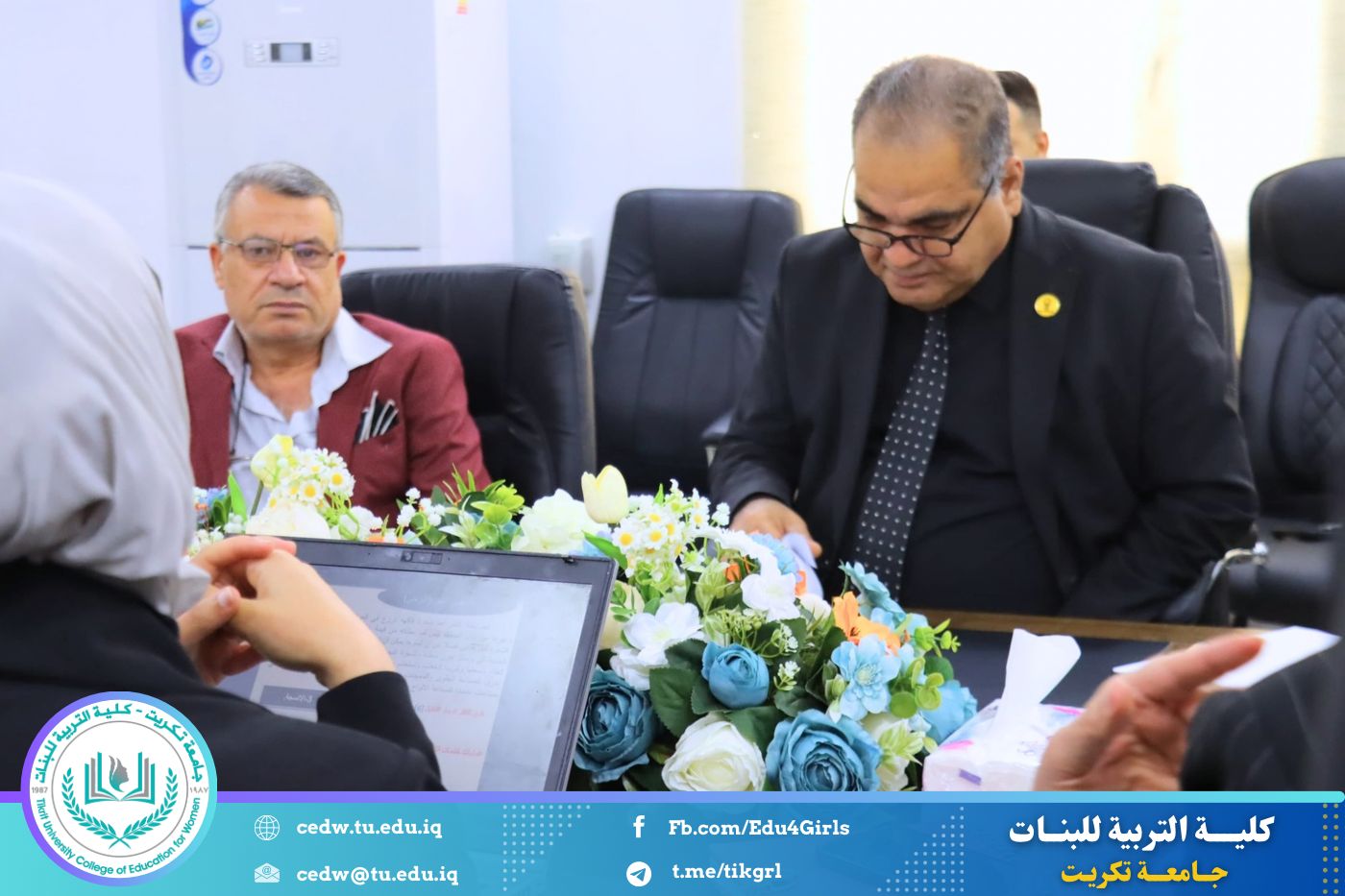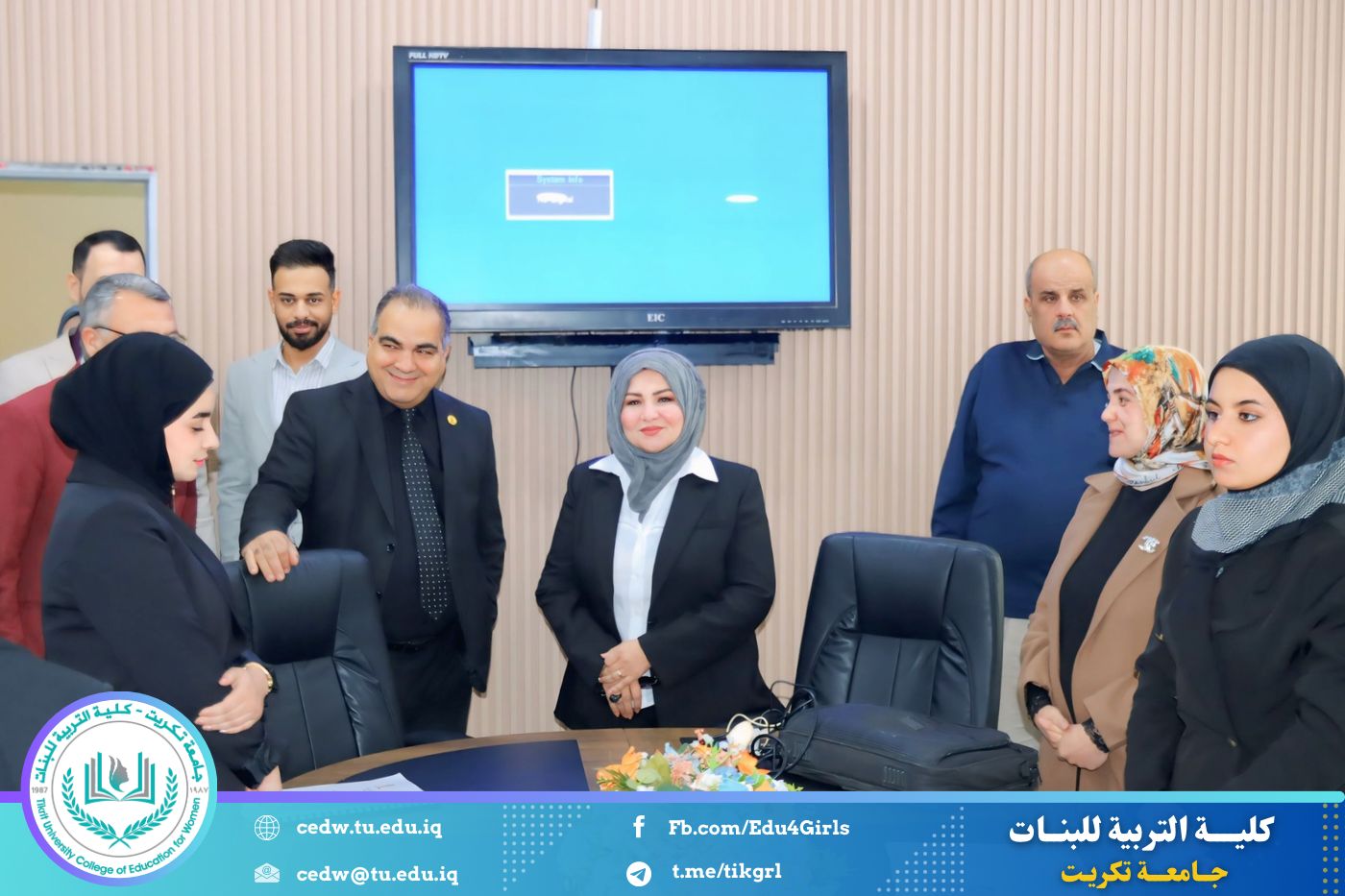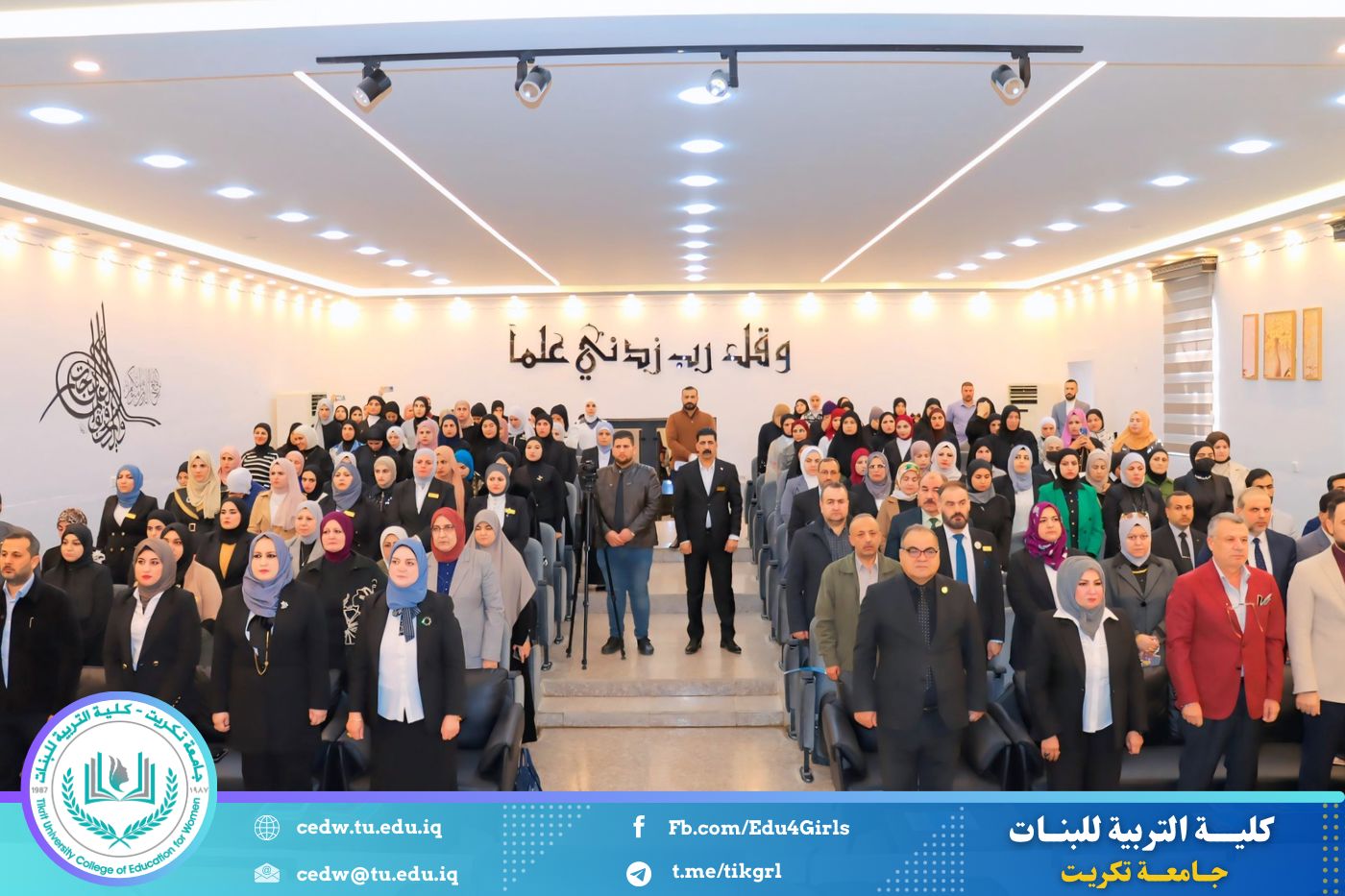 برعاية السيد رئيس جامعة تكريت الأستاذ الدكتور وعد محمود رؤوف، وبإشراف السيدة عميد كلية التربية للبنات الأستاذ الدكتورة نجلاء عبدالحسين عليوي، وبحضور السيد معاون رئيس الجامعة للشؤون العلمية الأستاذ الدكتور حسن حسين إبراهيم، والسيد مدير قسم الدراسات والتخطيط في جامعة تكريت الأستاذ الدكتور صالح حسن عبد الله، عقدت كلية التربية للبنات صباح اليوم الأربعاء الموافق ١١ آذار ٢٠٢٦ مؤتمرها العلمي السابع عشر لمناقشة بحوث التخرج لطلبة المرحلة الرابعة، وذلك على قاعة المرحوم الأستاذ الدكتور جايد زيدان، وتحت شعار (بحوث التخرج – دفعة رائدات المعرفة).